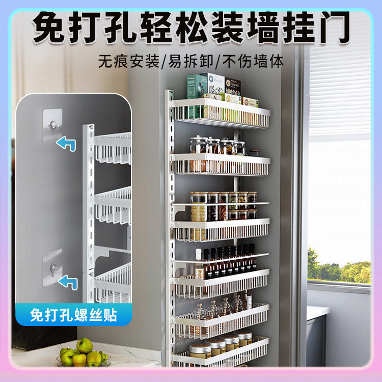 Giá Để Đồ Treo Tường Không Đục Lỗ Phía Sau Cửa Nhiều Lớp Có Thể Điều Chỉnh Tủ Bếp Tường Gia Vị Biển