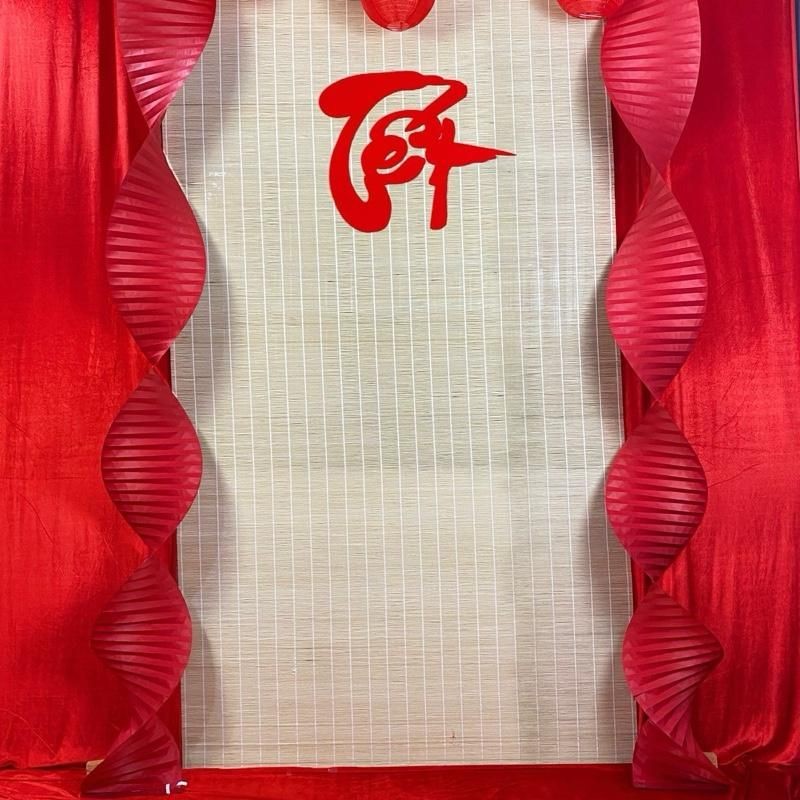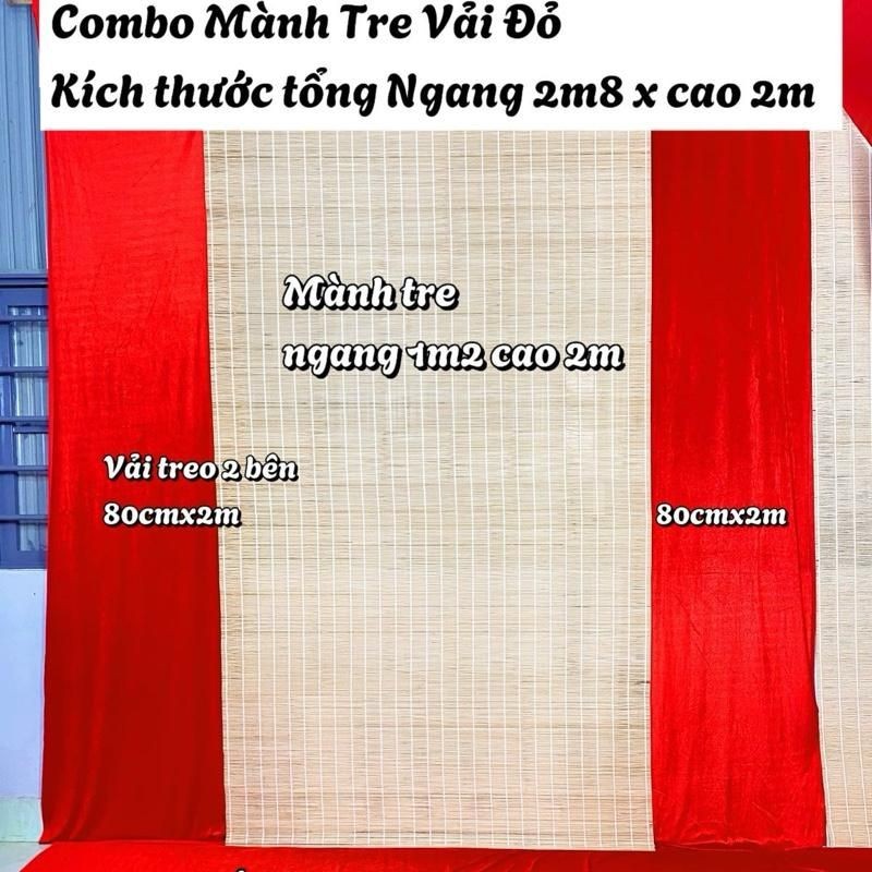 Combo Mành Tăm Tre hoặc Mành Cọ Phối Vải Đỏ Trang Trí Tết Ngang 3m1 cao 3m