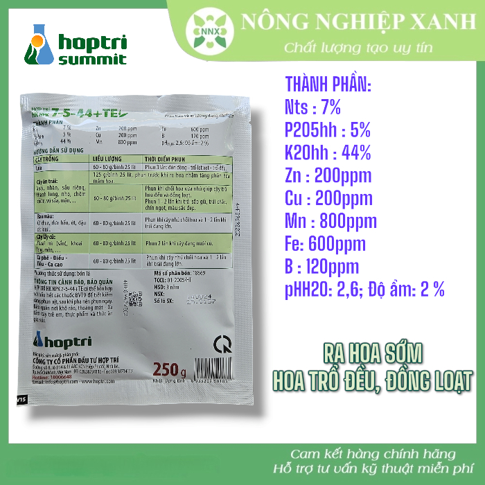 NPK 7-5-44 gói 250gr - Phân bón lá NPK (Ra hoa sớm, Hoa trổ đều, Đồng loạt)
