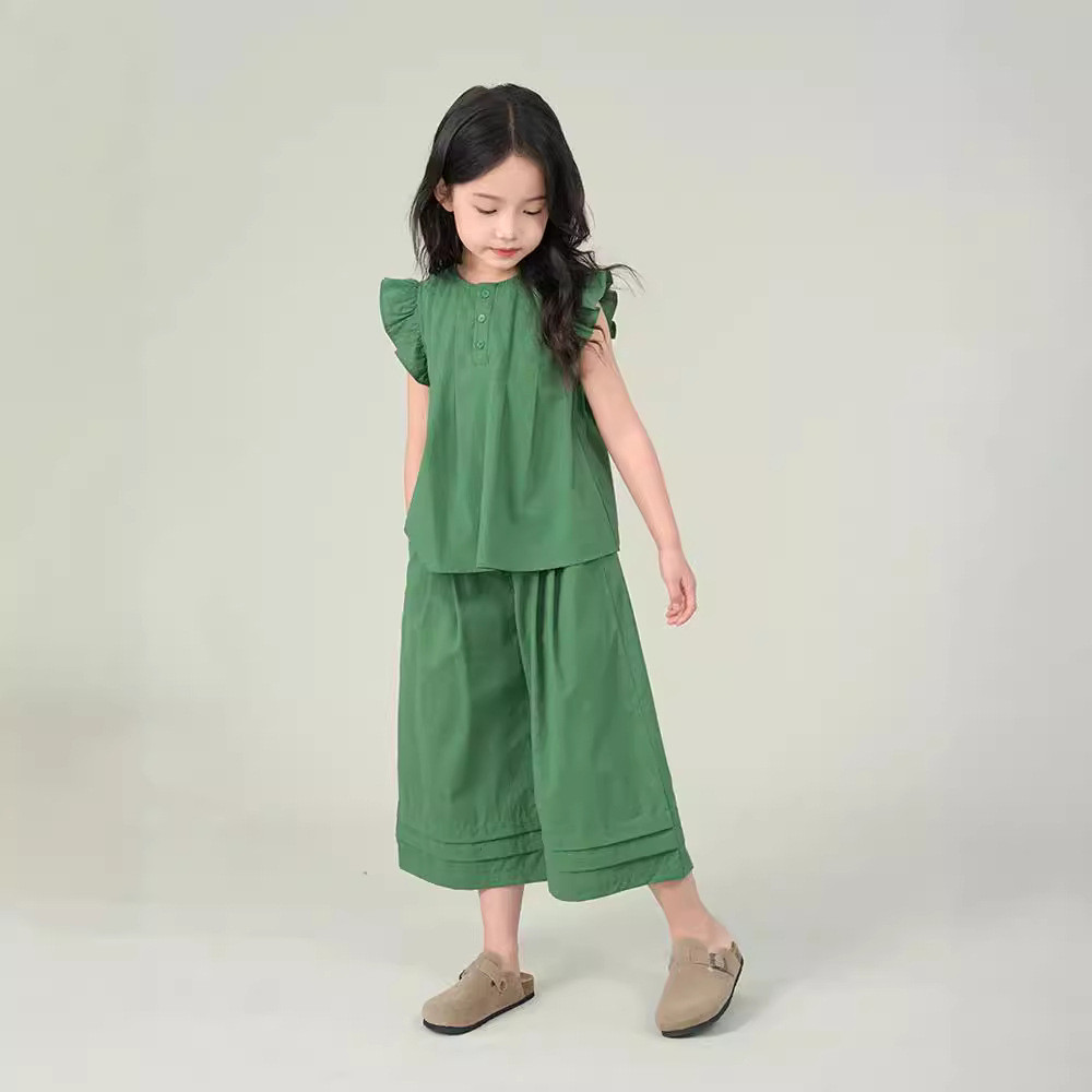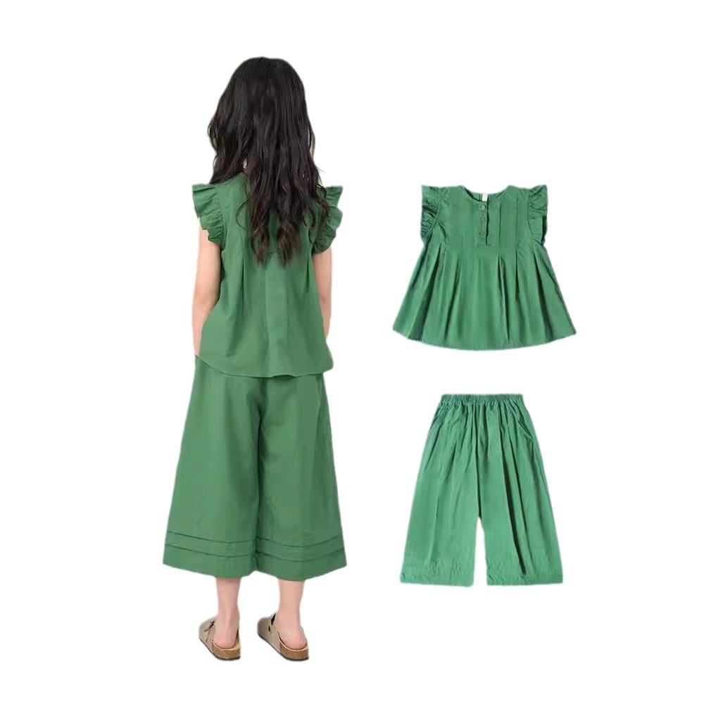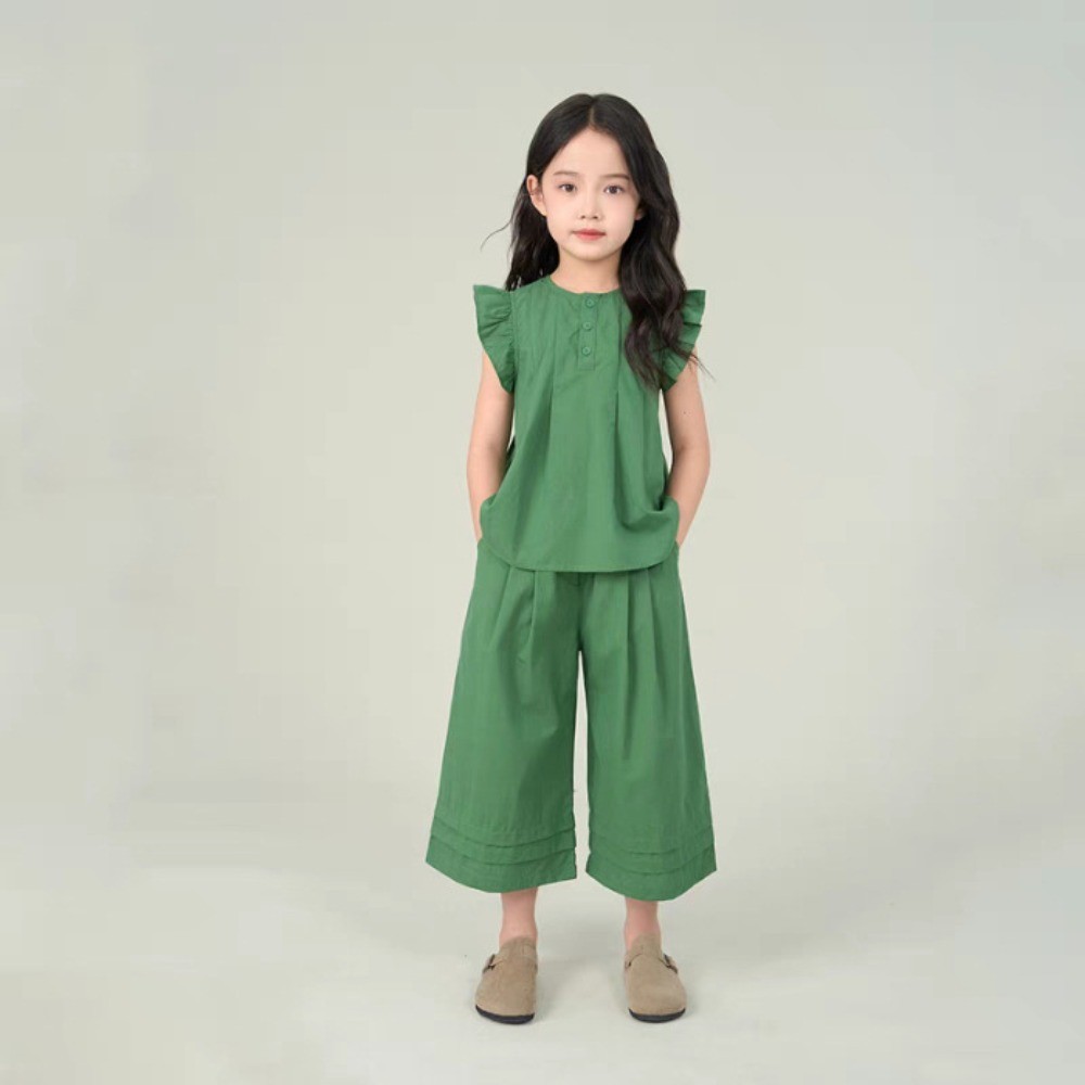 BEAR LEADER Gấu Leader 4 Đến 15 Tuổi Thanh Thiếu Niên Quần Áo Bé Gái Màu Trơn Bay Tay Áo Thun Và Quần 2 Miếng Bộ Mùa Hè Mới Trẻ Em Phù Hợp Với