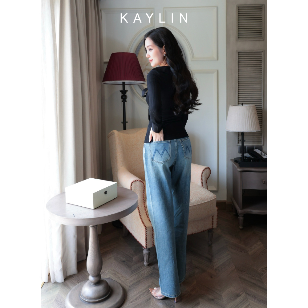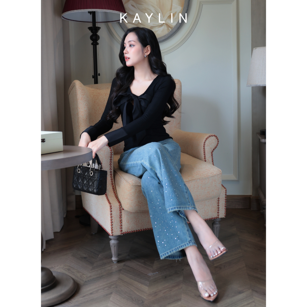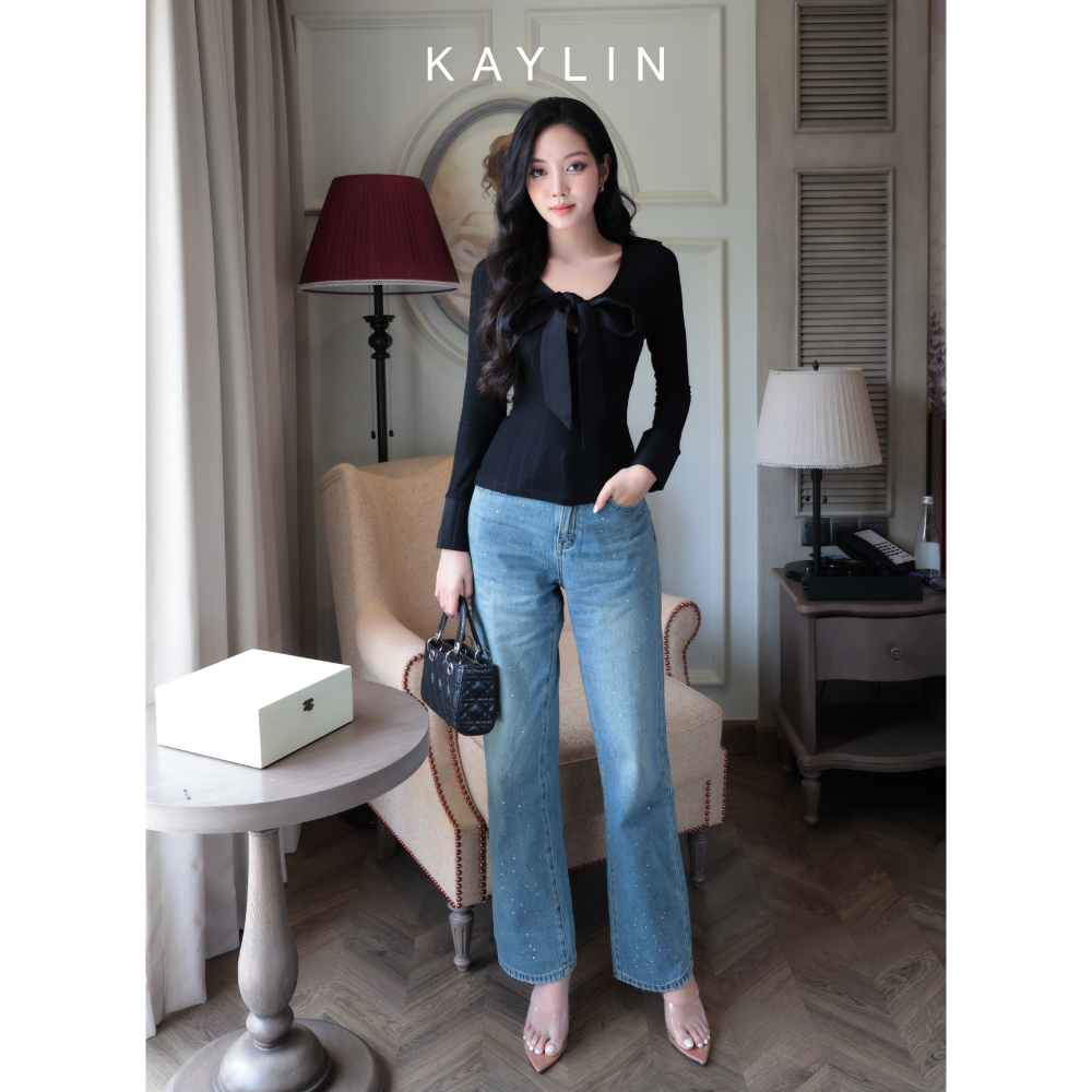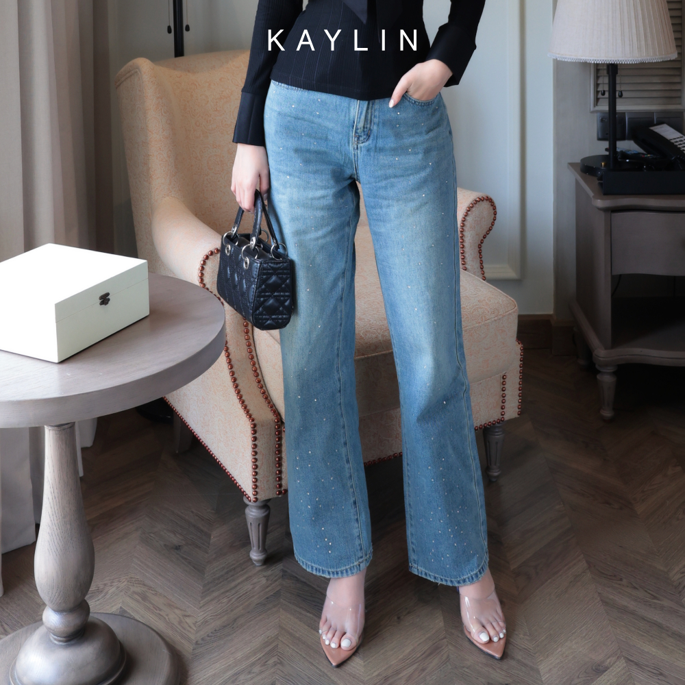 Quần JEAN KAYLIN form suông đính đá chất vải Denim dầy dặn phong cách BST Hè 2025 - N2451