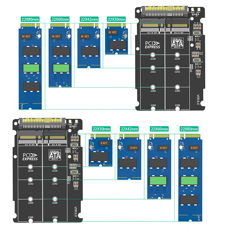 Vỏ SSD 2 Trong 1 M.2 NVME PCI-E NGFF SATA SSD Sang U.2 SFF-8639 Combo Adapter Vỏ Nhôm M2 Hộp SSD Cho PC Máy Tính Để Bàn