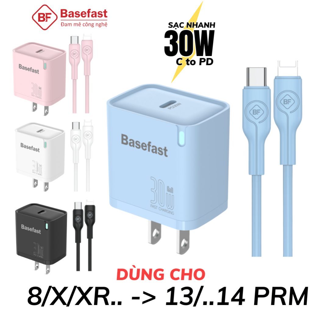 Bộ sạc nhanh 20W Basefast cho Phone xr xsm 11 12 13 14 pro max củ sạc nhỏ gọn chống quá tải nhiệt