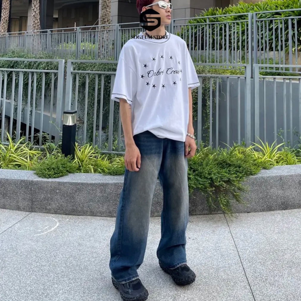 Quần jeans Nam ống rộng suông wash màu cá tính Vintage Faded Indigo Cao cấp
