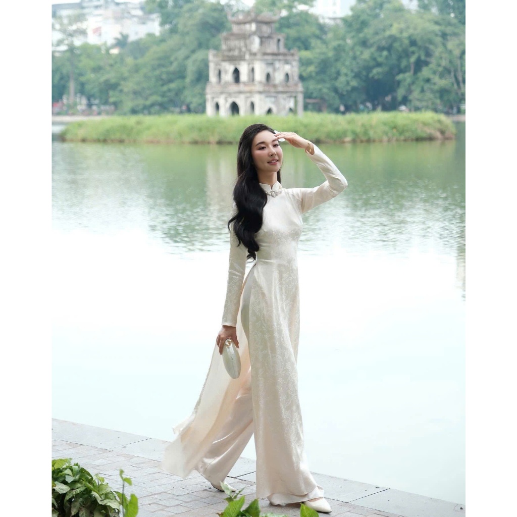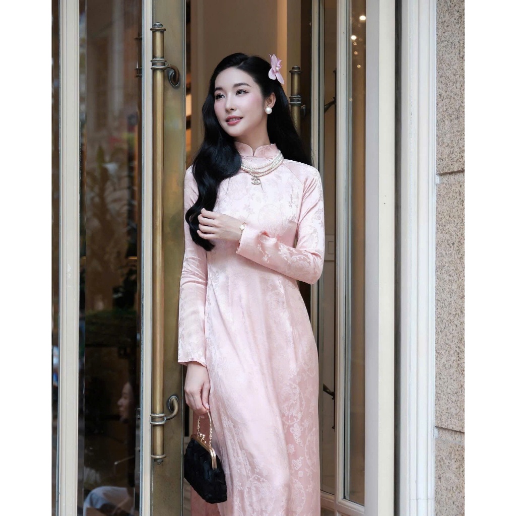 Áo Dài Gấm Trúc Dáng Ôm ,Thiết Kế Sang Trọng, Mặc Tết, Đi Lễ, Biểu Diễn Nghệ Thuật