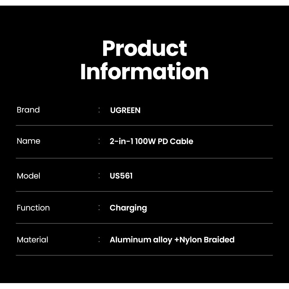 Cáp Chia UGREEN Type C 1 USB C sang 2 USB C PD 5A 100W Cáp Sạc Nhanh Cho Điện Thoại Laptop