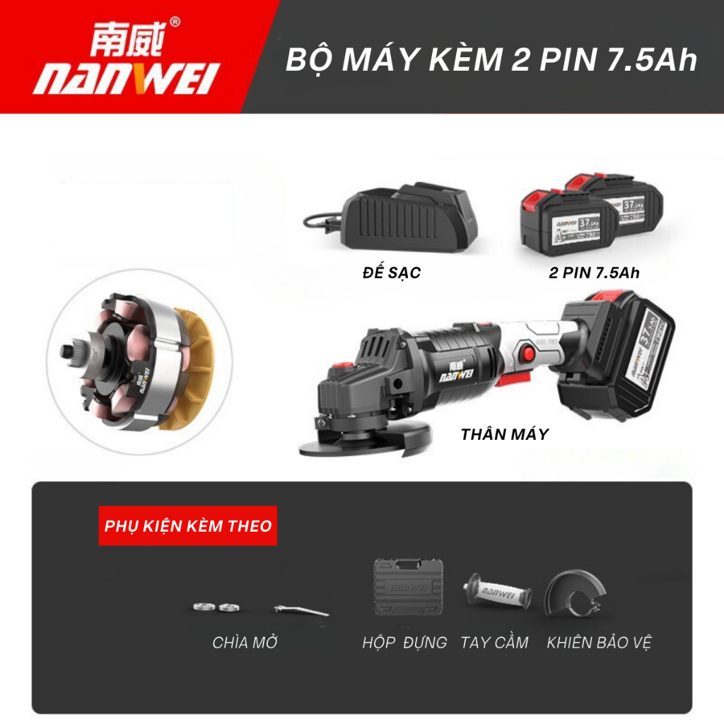 (NỘI ĐỊA TRUNG) Máy Mài,Máy Cắt,Máy Đánh Bóng,Máy Mài Góc Nanwei Thân Xoay 270 độ, Động Cơ Không Chổi Than,MG-100-88VF