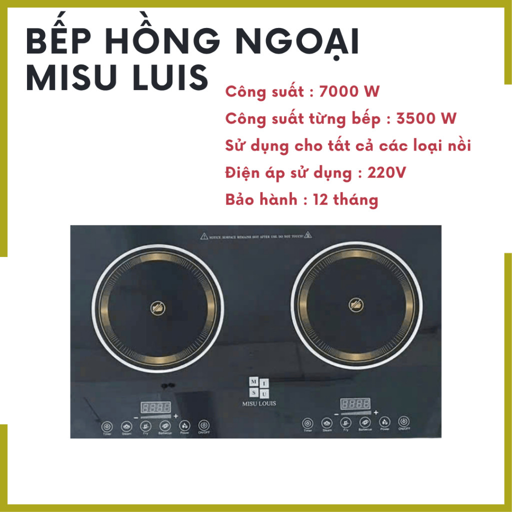 Bếp hồng ngoại , bếp hồng ngoại đôi MISU công suất 7000w , bếp điện đôi chính hãng bảo hành 12 tháng
