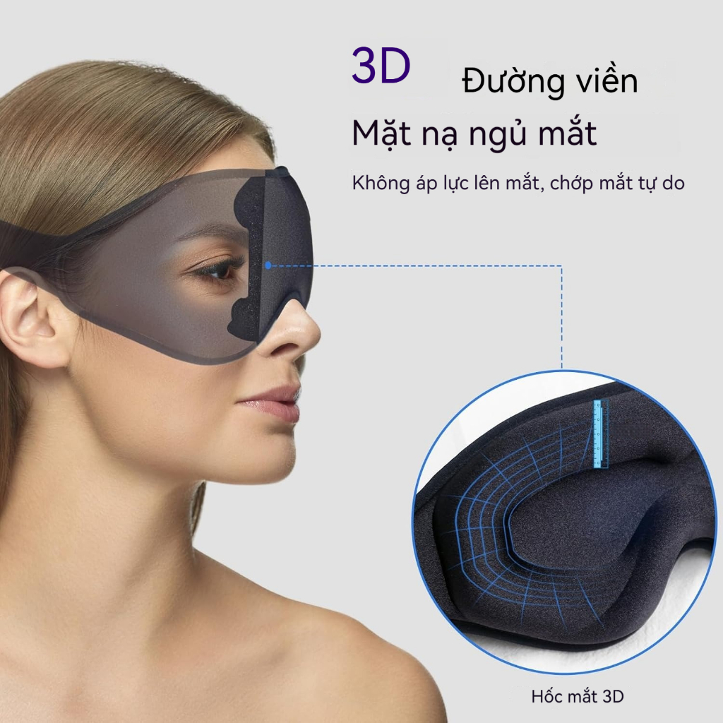 Mặt nạ ngủ 3D Light Blackout Eye Mask cho giấc ngủ Có thể giặt được 0 Vỏ mắt áp lực có dây đeo có thể điều chỉnh