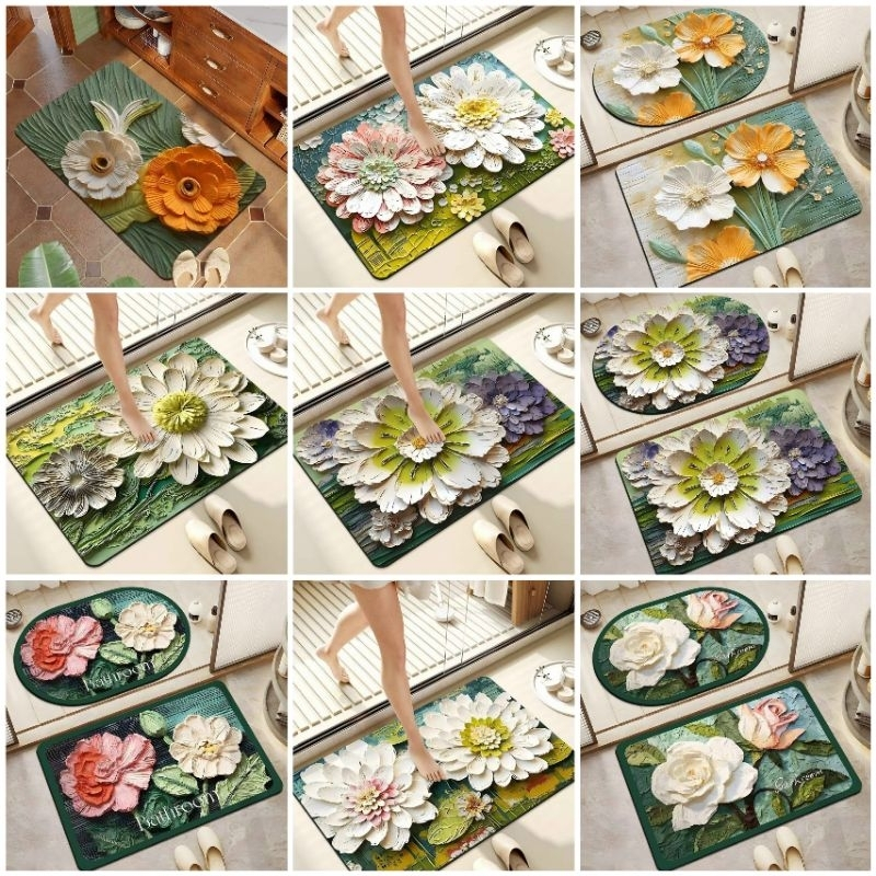 Combo 7 Thảm Chùi Chân 3D + 1 Bộ Thảm Bếp Chống Trơn Trượt