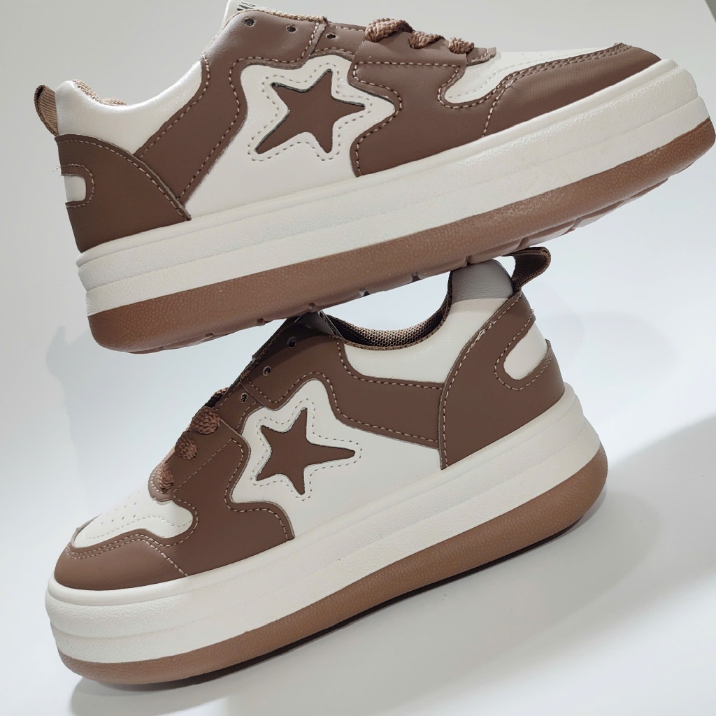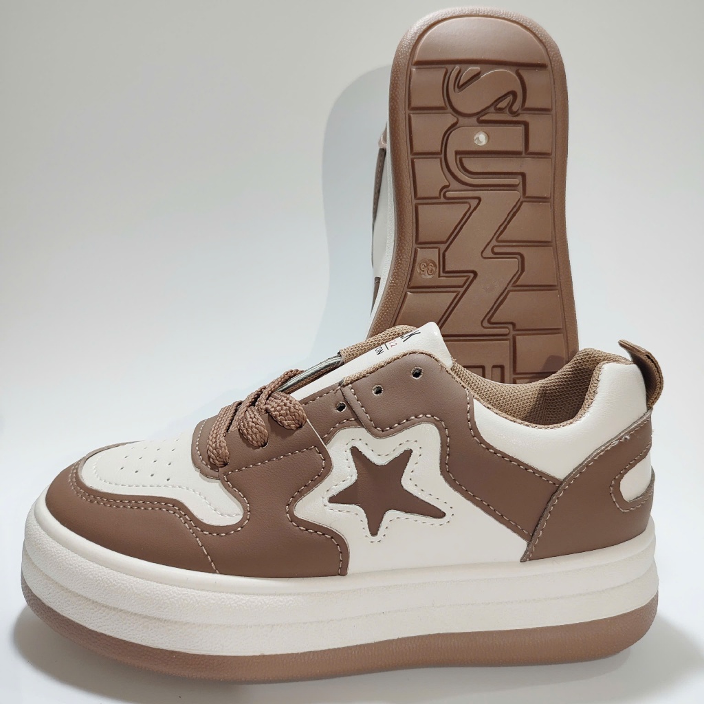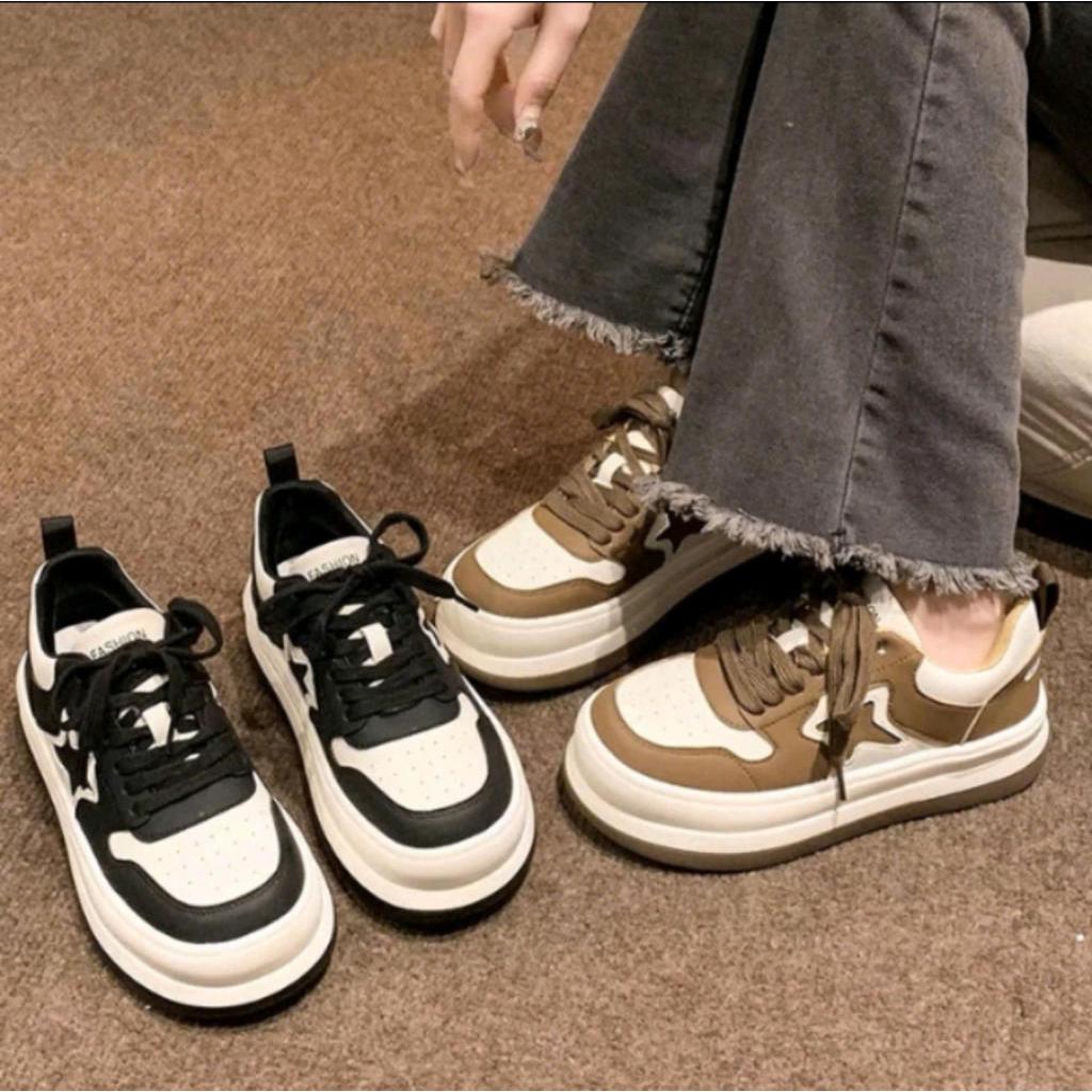 Giày thể thao nữ họa tiết ngôi sao, Đế dày, Dây cột, Phong cách Hàn Quốc