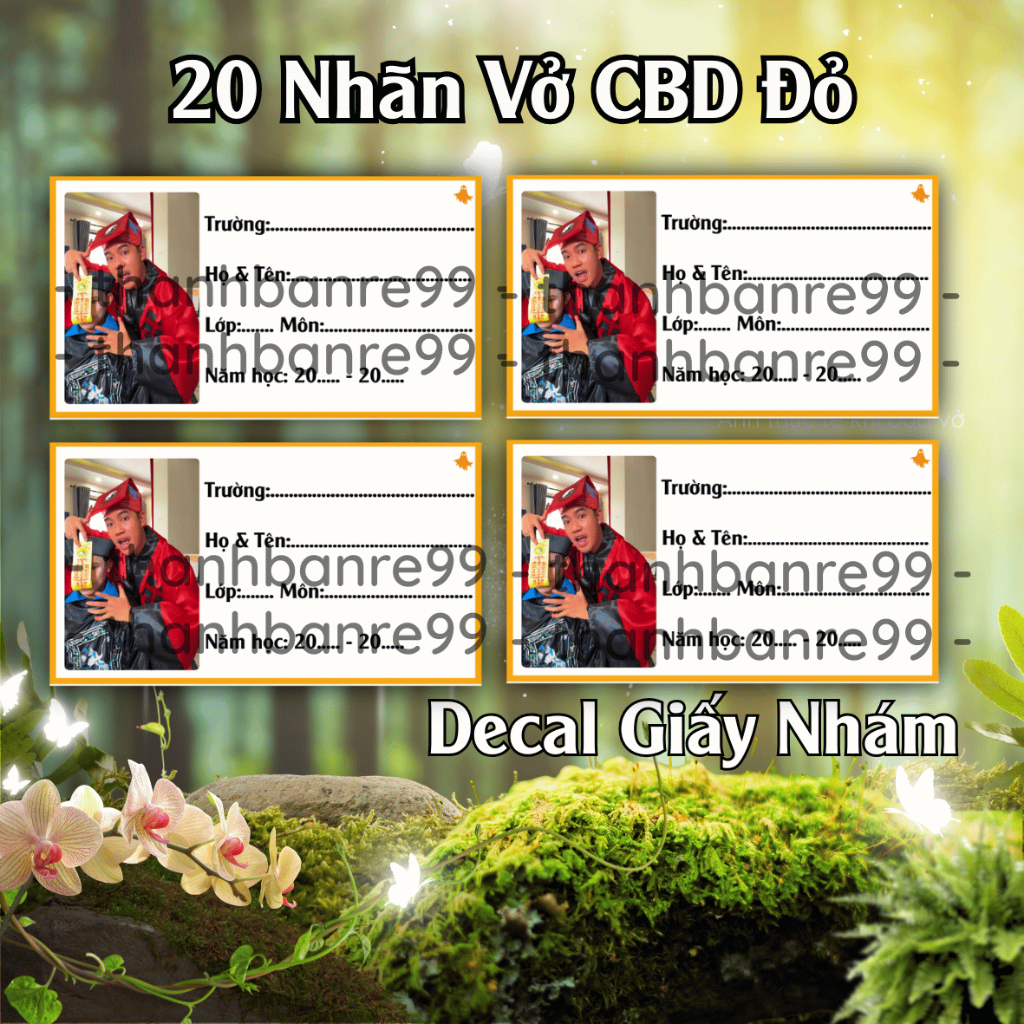 20 Nhãn Vở Chú Ba Duy (Thầy 3) Như Hình - Đã Cắt Bế Sẵn - Chỉ Cần Lột Ra Là Dán