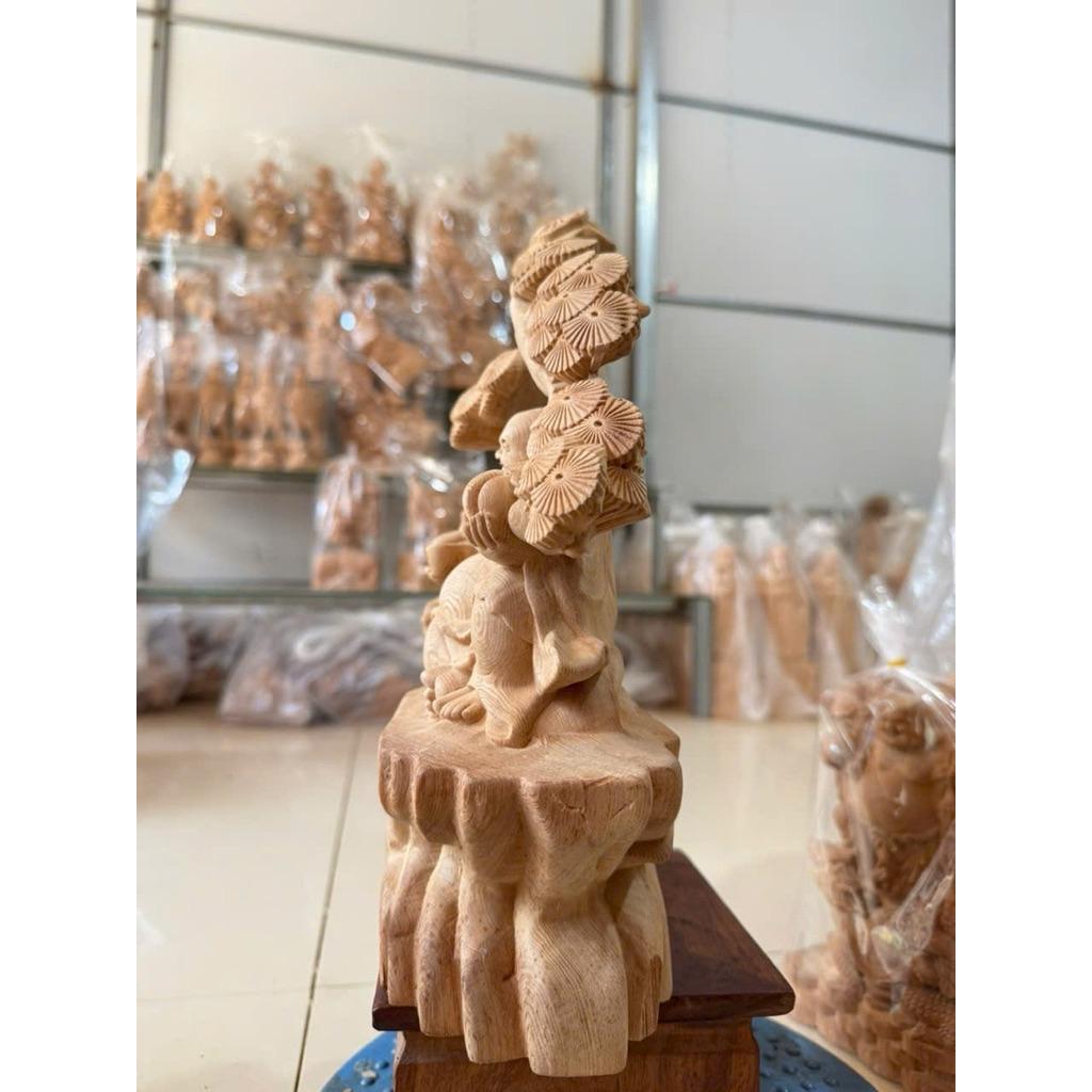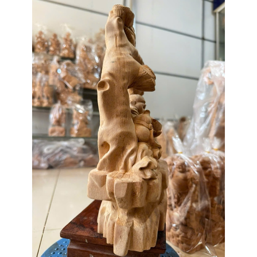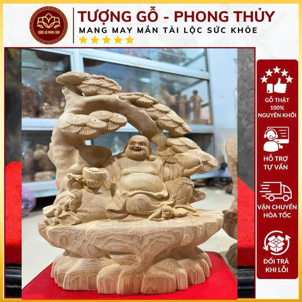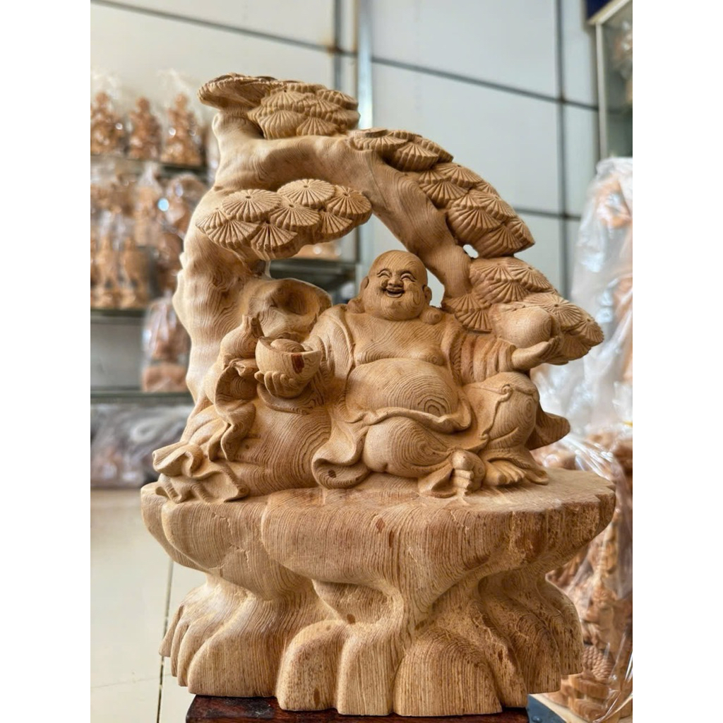 Tượng di lặc ngồi gốc cây Tùng mang bình an tài Lộc tràn ngập niềm vui gỗ ngọc am thơm phức kích thước cao 30-24-10cm