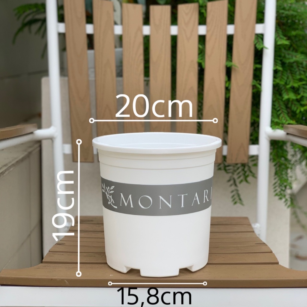 Chậu nhựa trồng cây VIETPOT, màu trắng hoa văn Montario, trồng hoa kiểng, để nhà, sân vườn.