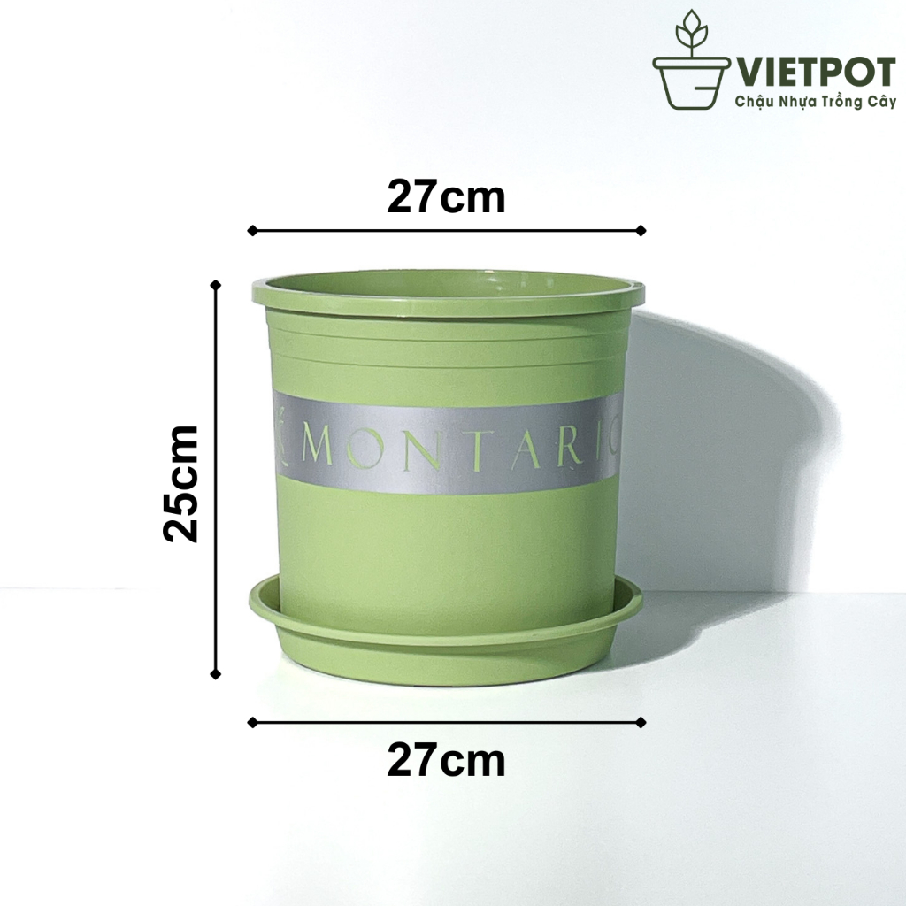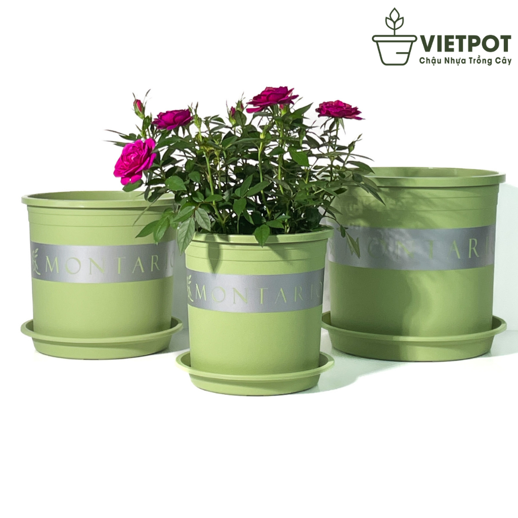 Chậu nhựa trồng cây VIETPOT, xanh Mint MONTARIO, kiểng lá, hoa hồng, để bàn, ban công sân vườn.