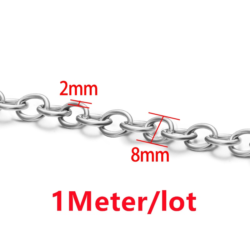 Chiều rộng 1.5 / 2 / 2.5 / 3 / 3.8 / 4.5 / 5 / 6 / 7 / 8mm Thép không gỉ Rolo Dây chuyền cáp Vòng cổ tròn DIY Trang sức Làm vòng tay Curban Rất nhiều Dropshipping Số lượng lớn 1 mét