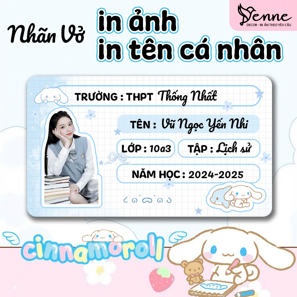 Nhãn vở, sticker in tên , in ảnh bé theo yêu cầu chủ đề các nhân vật Capybara, Labubu, Cinnamoroll, Hello Kitty