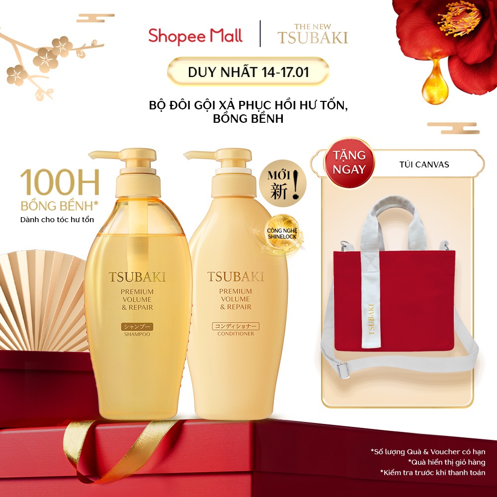 Bộ đôi Gội xả Phục hồi & bồng bềnh Tsubaki Premium Volume & Repair 450mlx2