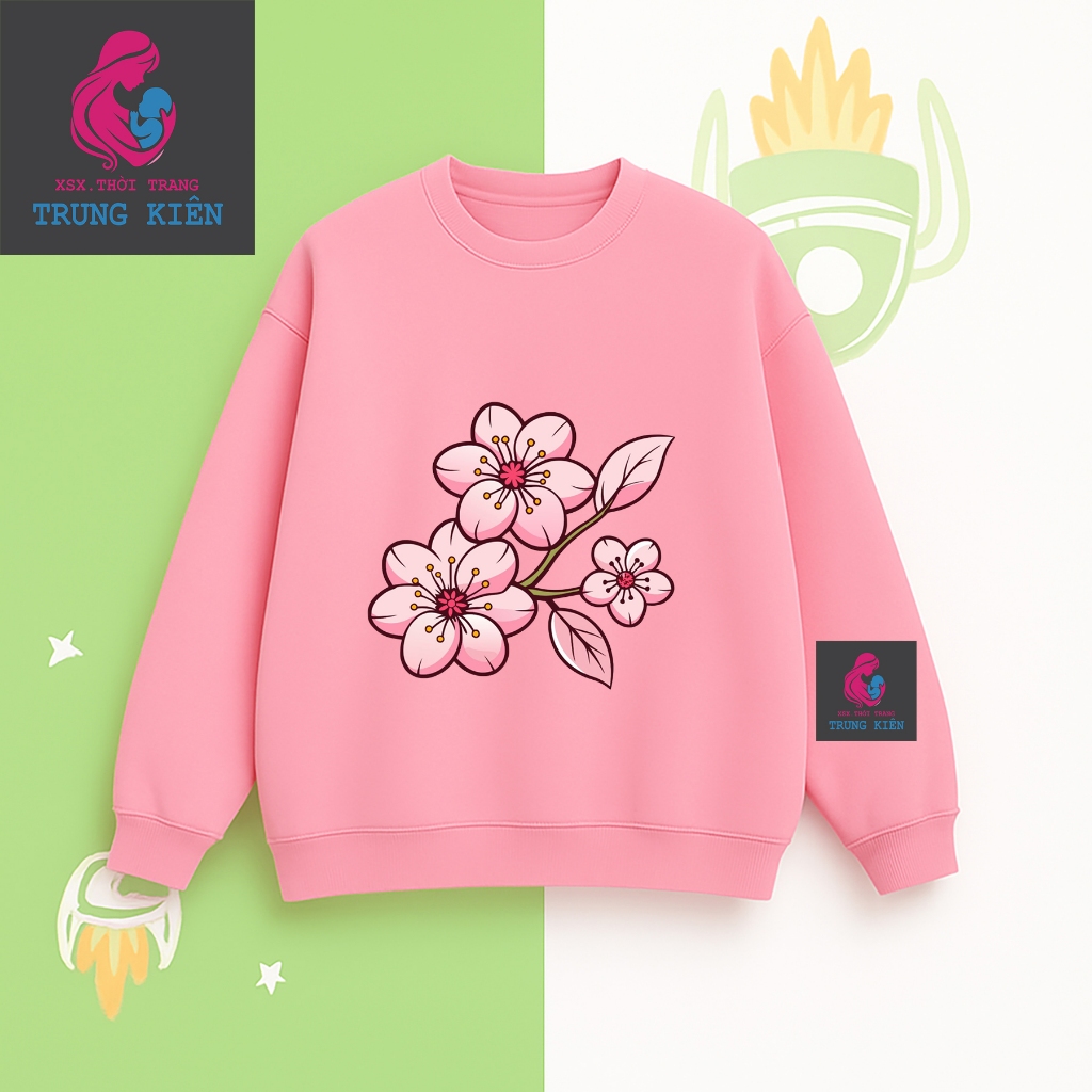 Áo Sweater Cho Bé Ấm Áp, Nỉ Cotton Mềm Mịn, Hình Cành Hoa Màu Hồng Dễ Thương Mùa Lạnh (M 313)