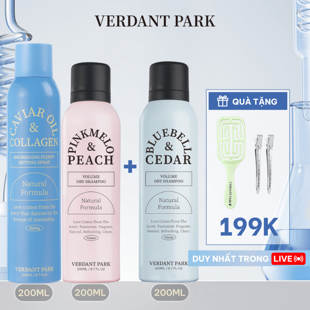 |LIVESTREAM| Combo 2 chai xịt khô phồng tóc và xịt dưỡng giữ nếp tóc VERDANT PARK COMBO84 COMBO87