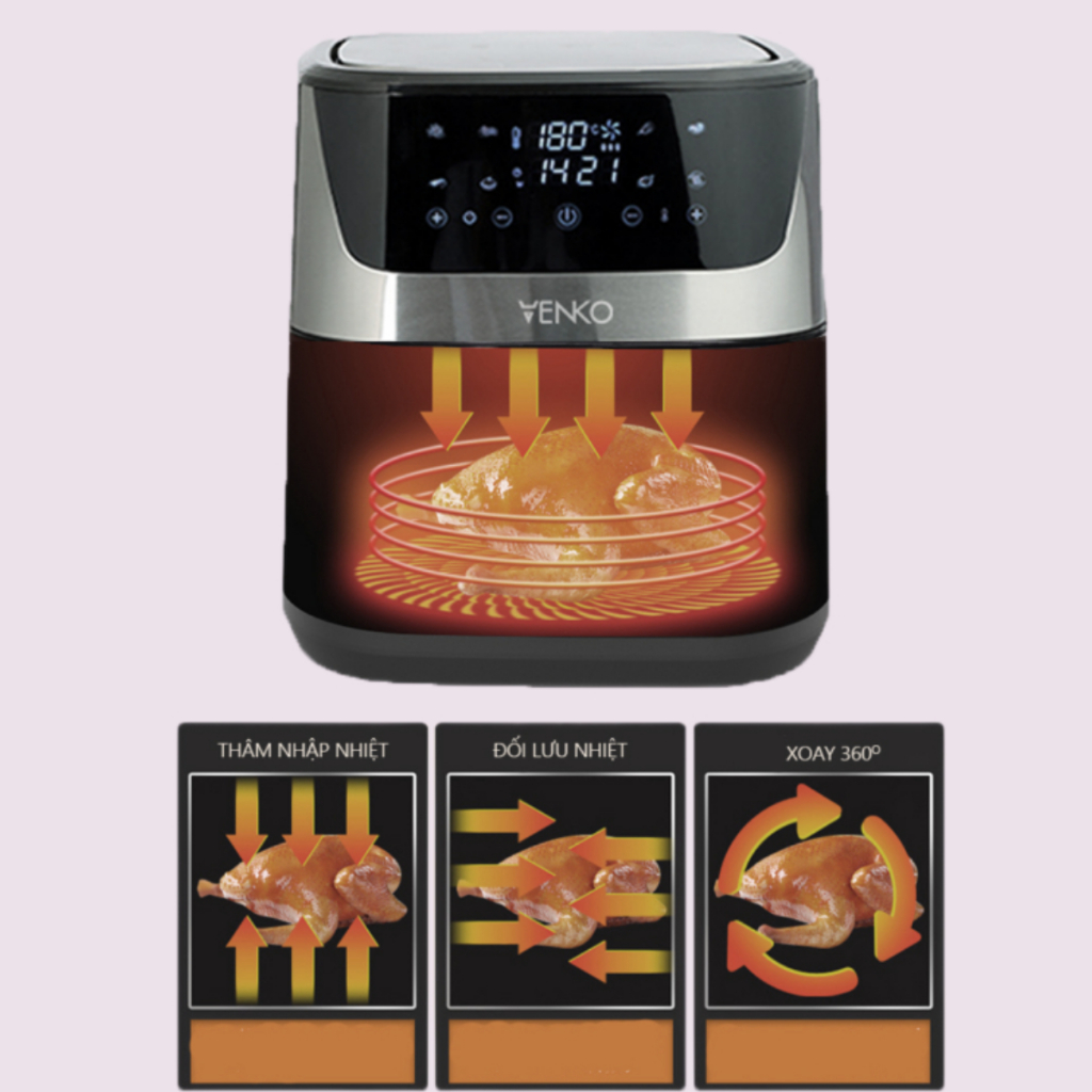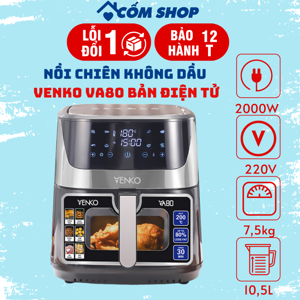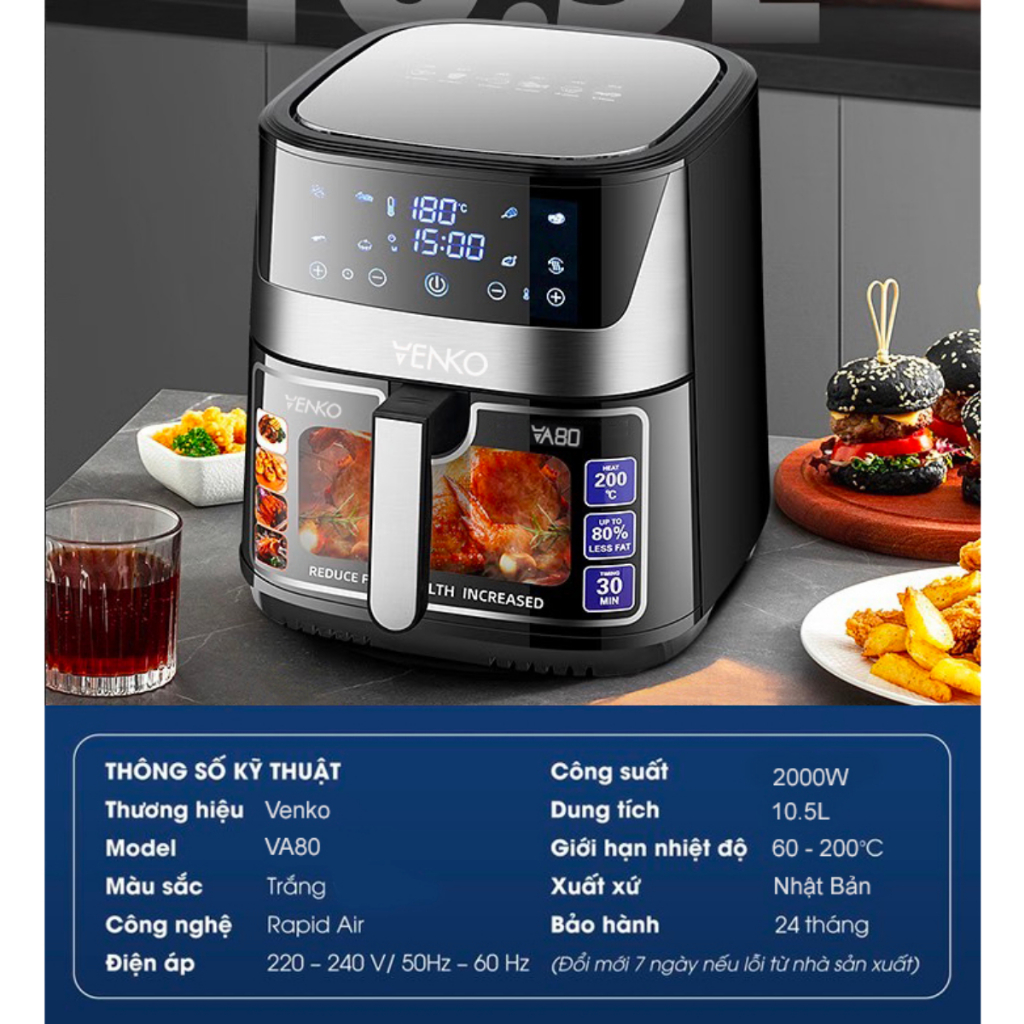Nồi chiên không dầu VENKO VA80 10,5L điều khiển cảm ứng các chế độ tự động dễ dùng hiện đại bảo hành 12 tháng
