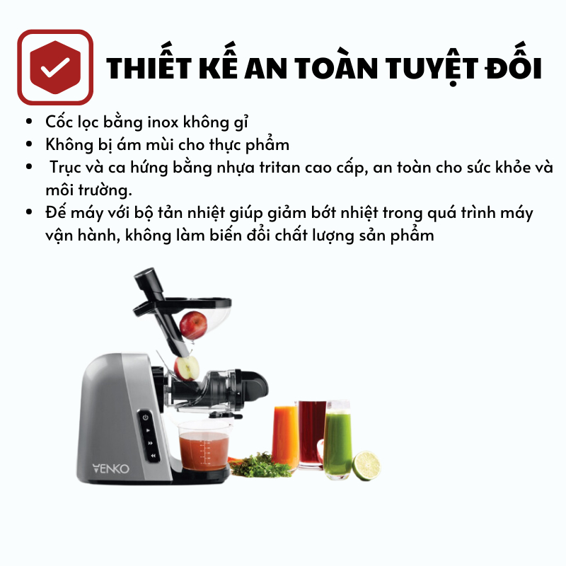 Máy ép chậm Venko trục ngang VS30 Nhật bản Công suất 200W Ép trái cây nguyên quả Bảo hành 12 tháng ép kiệt bã