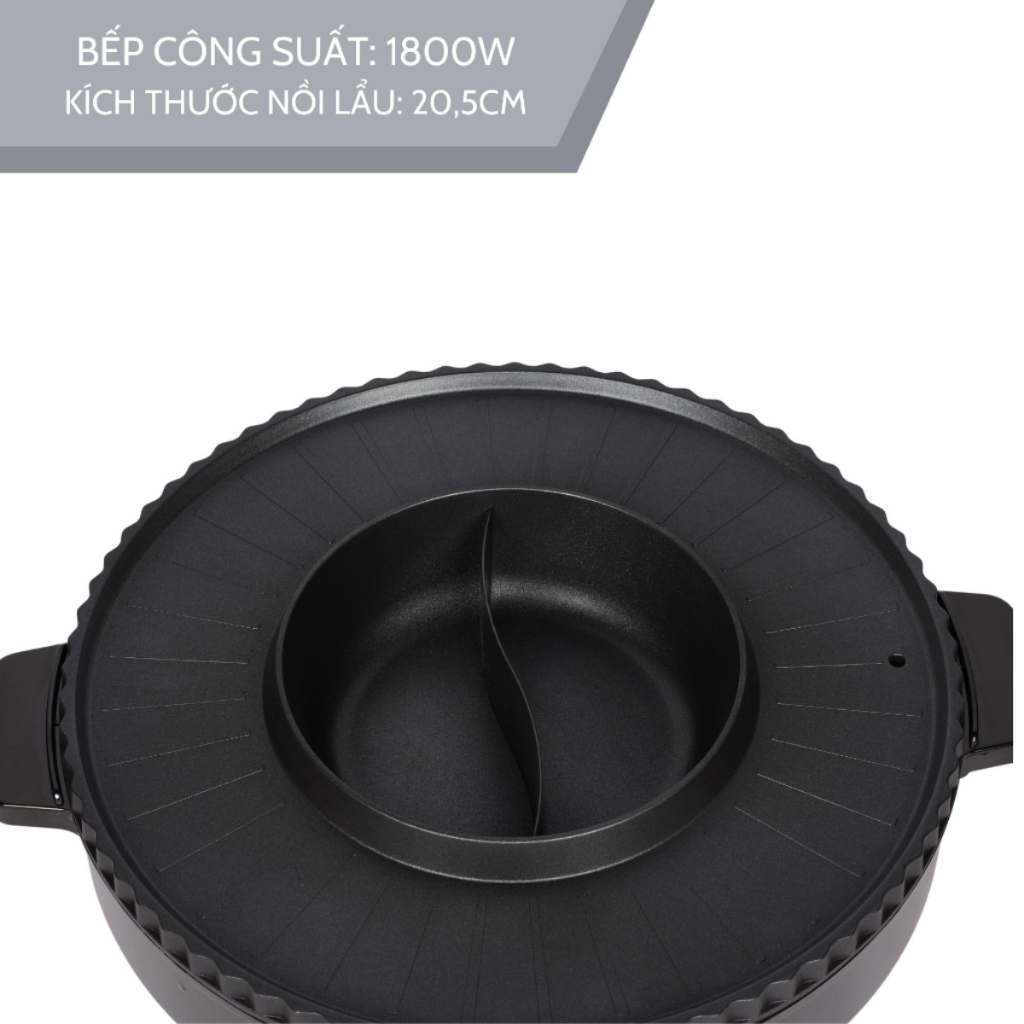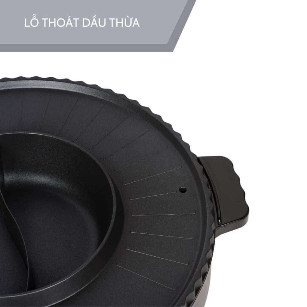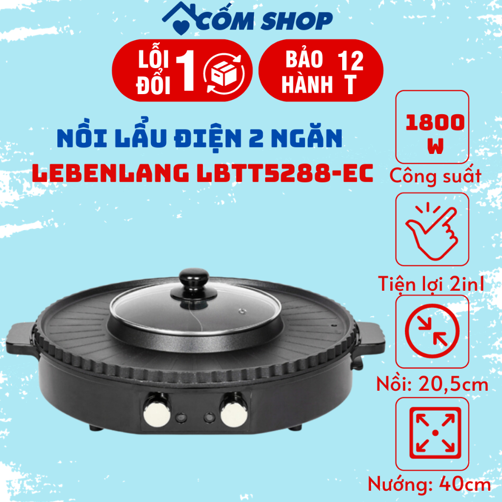 Nồi lẩu điện 2 ngăn Lebenlang LBTT5288-EC lẩu và nướng bảo hành 2 năm đường kính 40cm dùng cho 6-8 ăn vừa