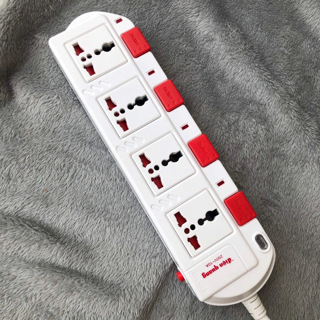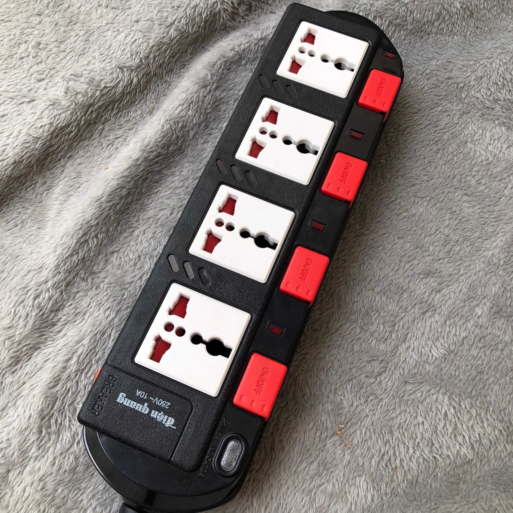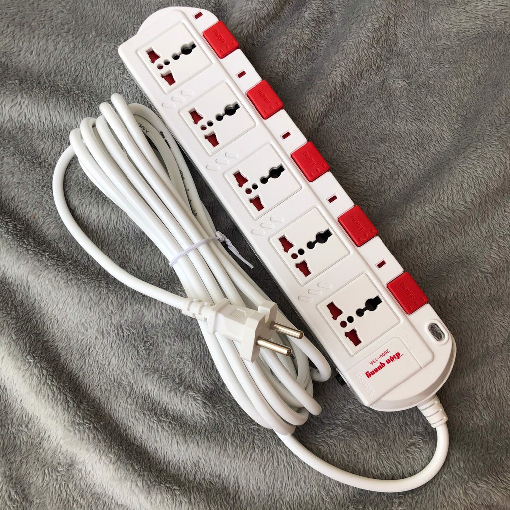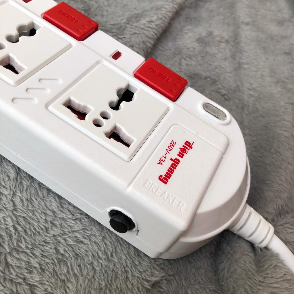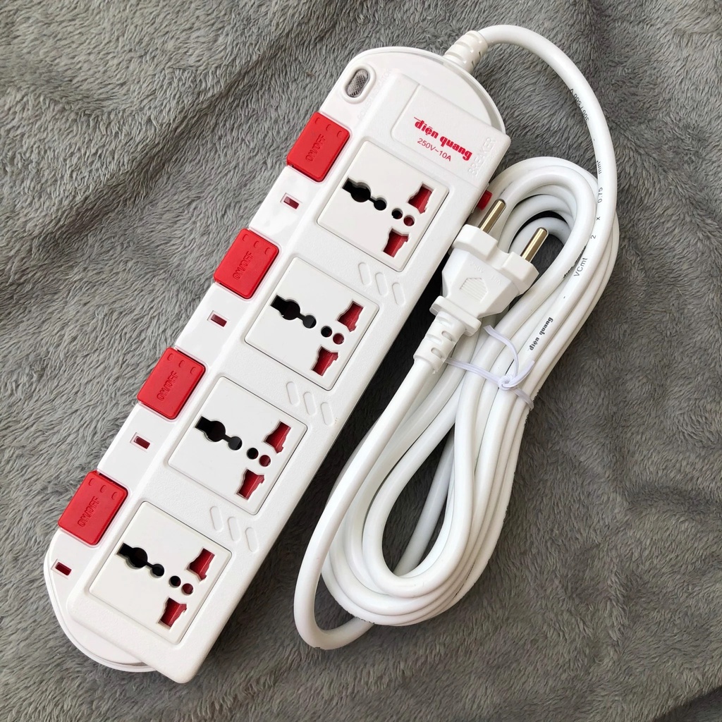 Ổ cắm Điện Quang đa năng cao cấp chịu tải cao 2500/3200W, 4 lỗ/5 lỗ Có công tắc riêng, dây dài 2m/5m