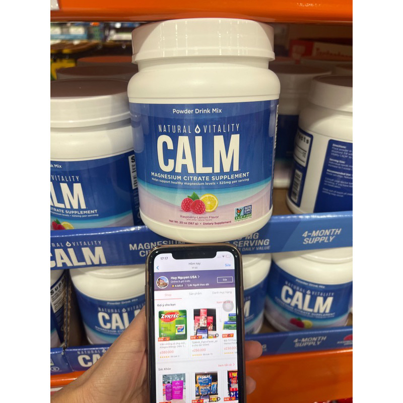 Bột magie Calm vị chanh mâm xôi giúp thư giãn (plus calcium) Natural Vitality
