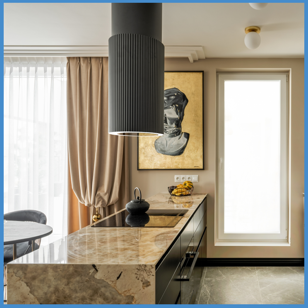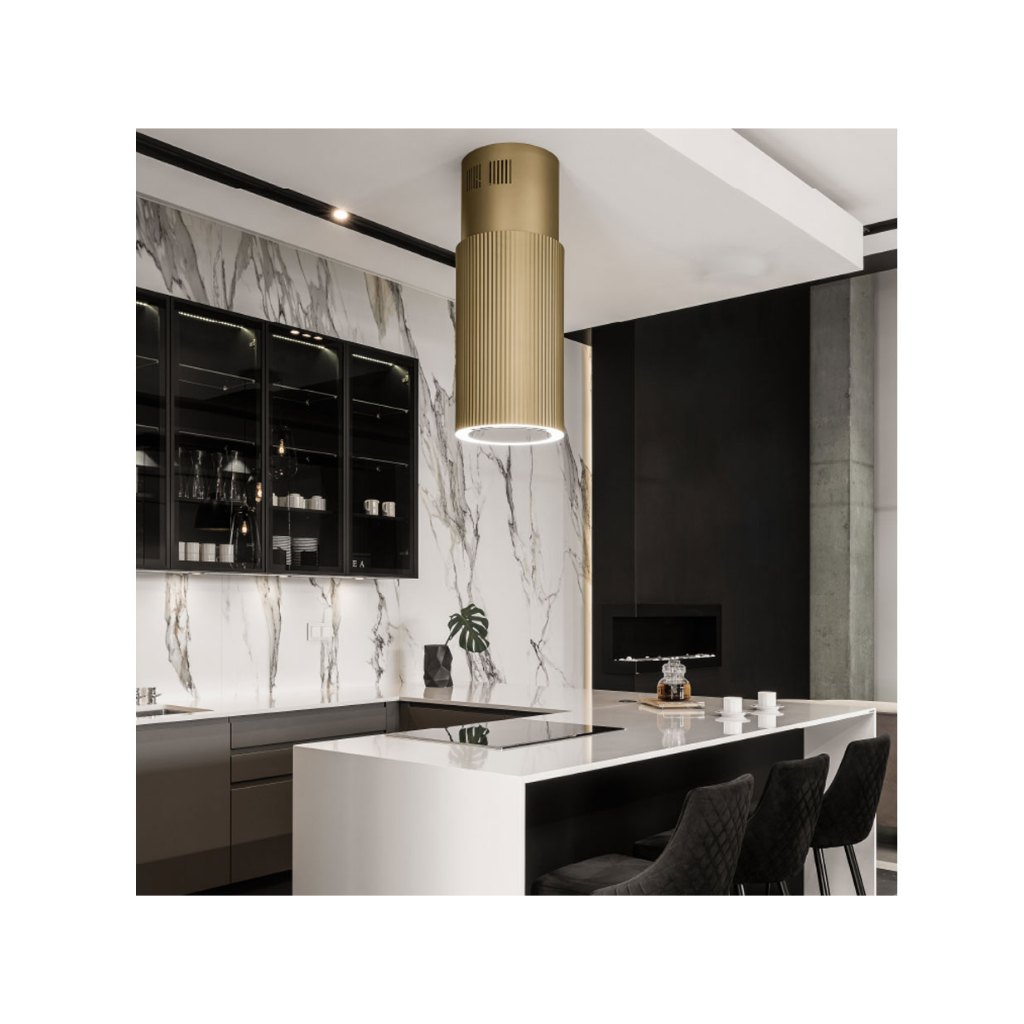 Máy hút mùi đảo Malloca Monogold K382G sơn tĩnh điện vàng Gold cao cấp công suất hút 670m3h