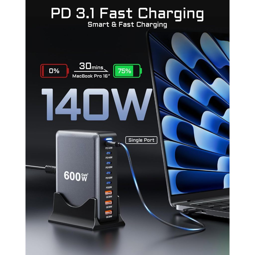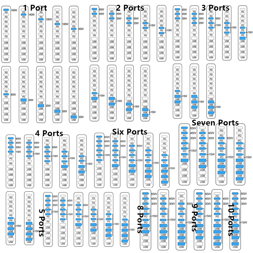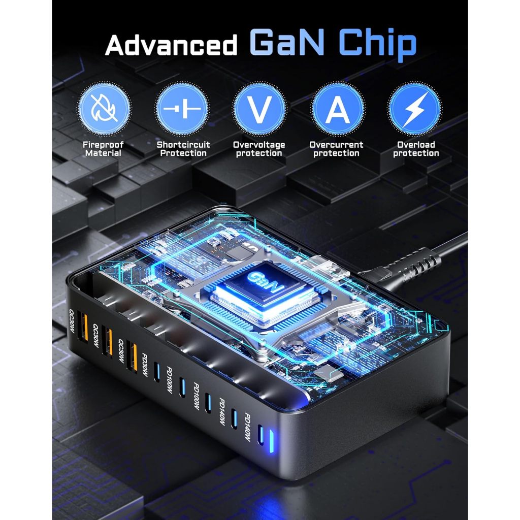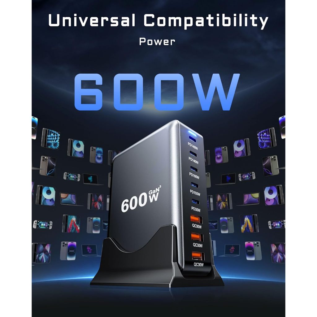 Bộ sạc nhanh trạm sạc Gan 3 100W 140W 600W 800W 8 cổng USB Type C để bàn đa cổng Laptop điện thoại PKCN