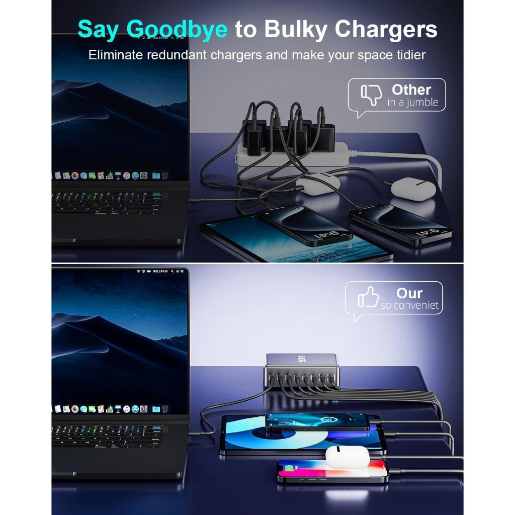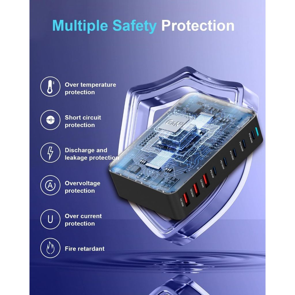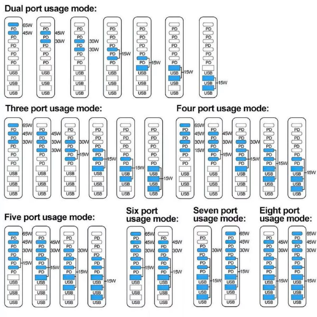 Bộ sạc nhanh trạm sạc Gan 3 100W 140W 600W 800W 8 cổng USB Type C để bàn đa cổng Laptop điện thoại PKCN
