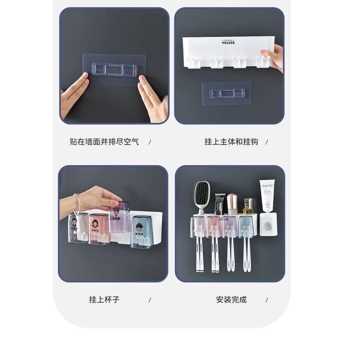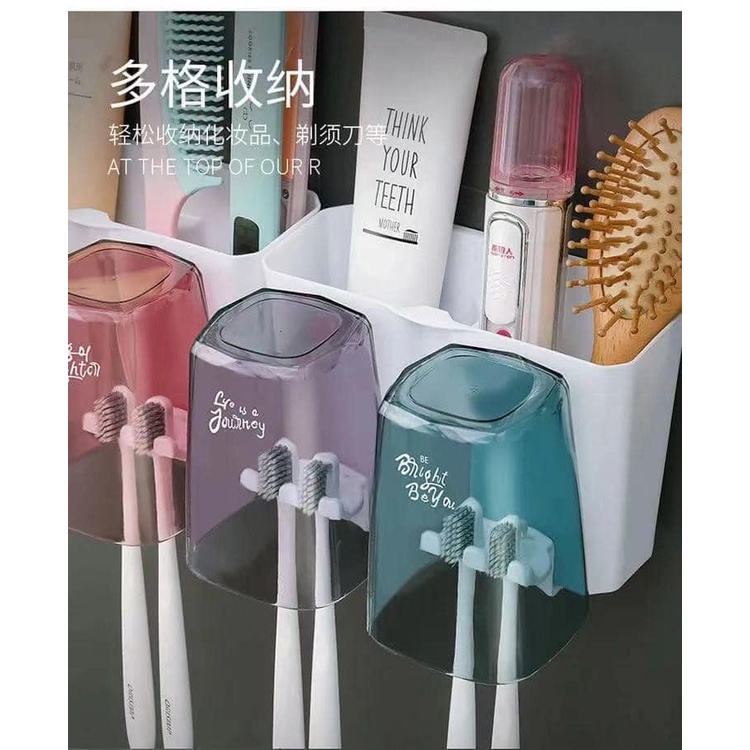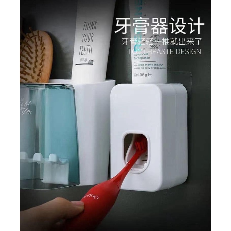 CỐC ĐỂ BÀN CHẢI NHẢ KEM ĐÁNH RĂNG TỰ ĐỘNG THÔNG MINH GIÁ TREO 4 CỐC ĐỂ ĐỒ DÁN TƯỜNG DÙNG CHO NHÀ TẮM