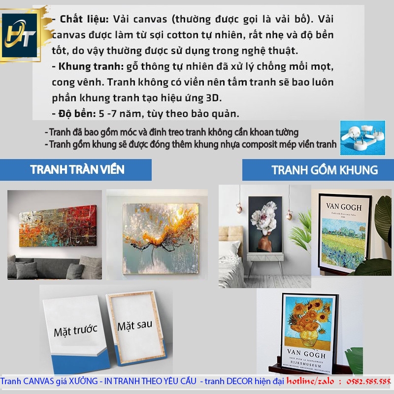 BỘ 05 tranh art decor hiện đại, tranh decor bán lẻ, tranh giá xưởng, tặng kèm đinh 3 chân