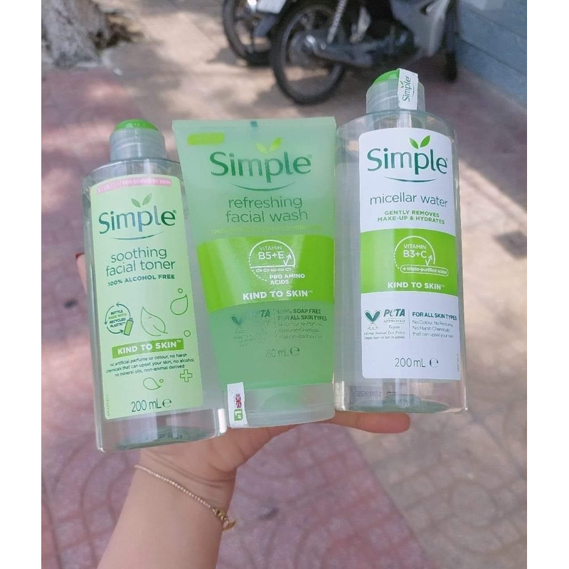 combo sản phẩm chăm sóc da simple ( nước hoa Hồng nước tẩy trang sữa rửa mặt )