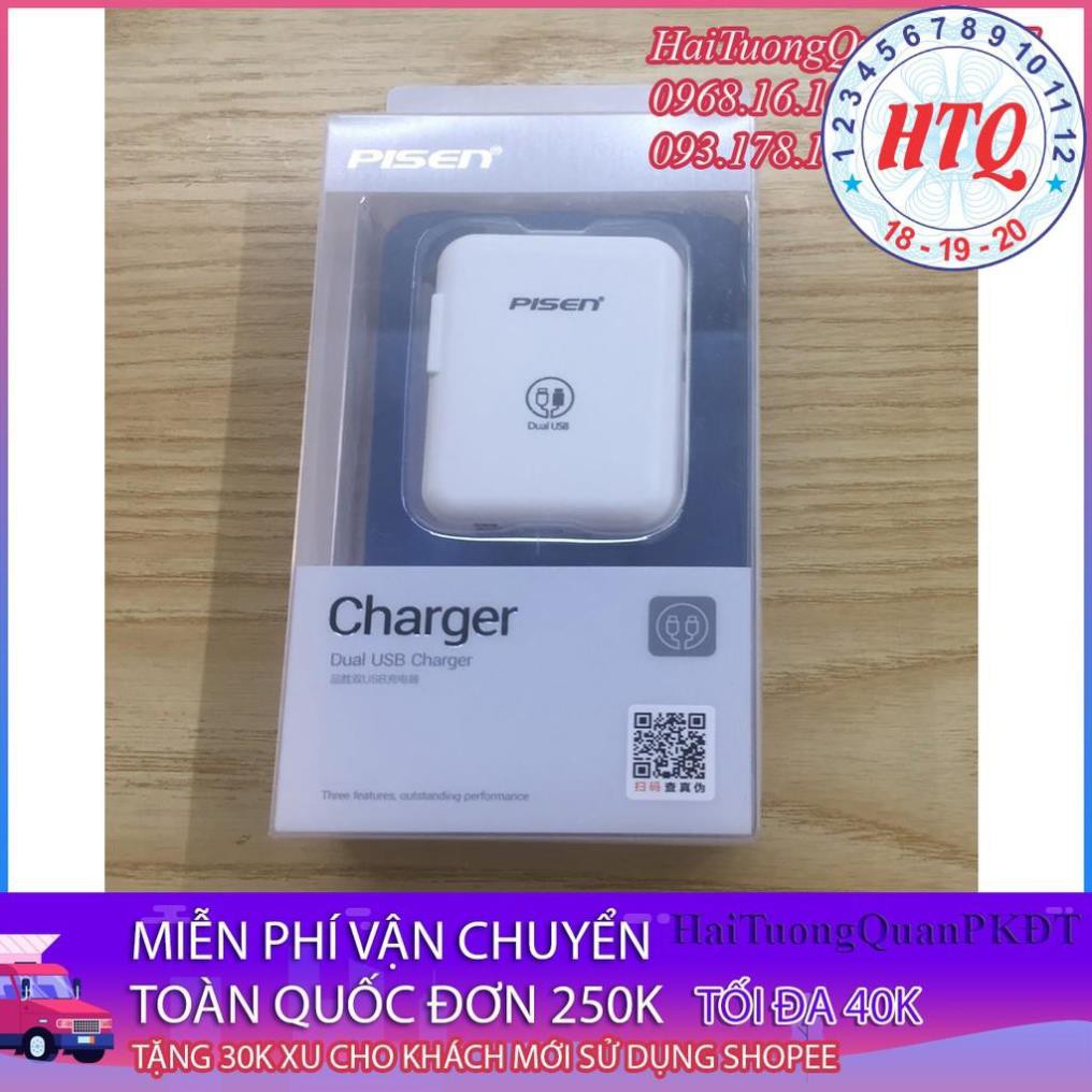 Củ sạc 2 cổng Pisen Dual USB charger chính hãng