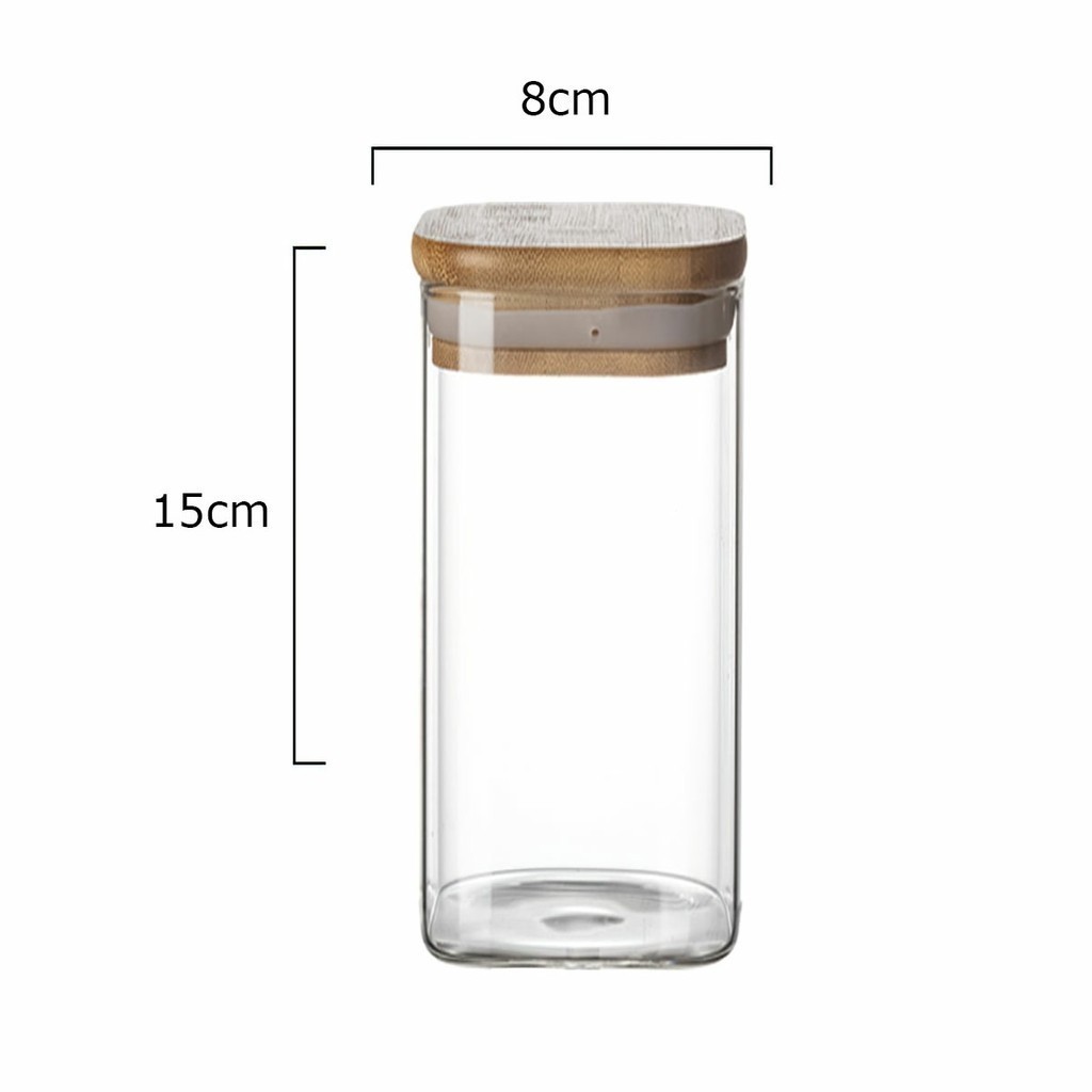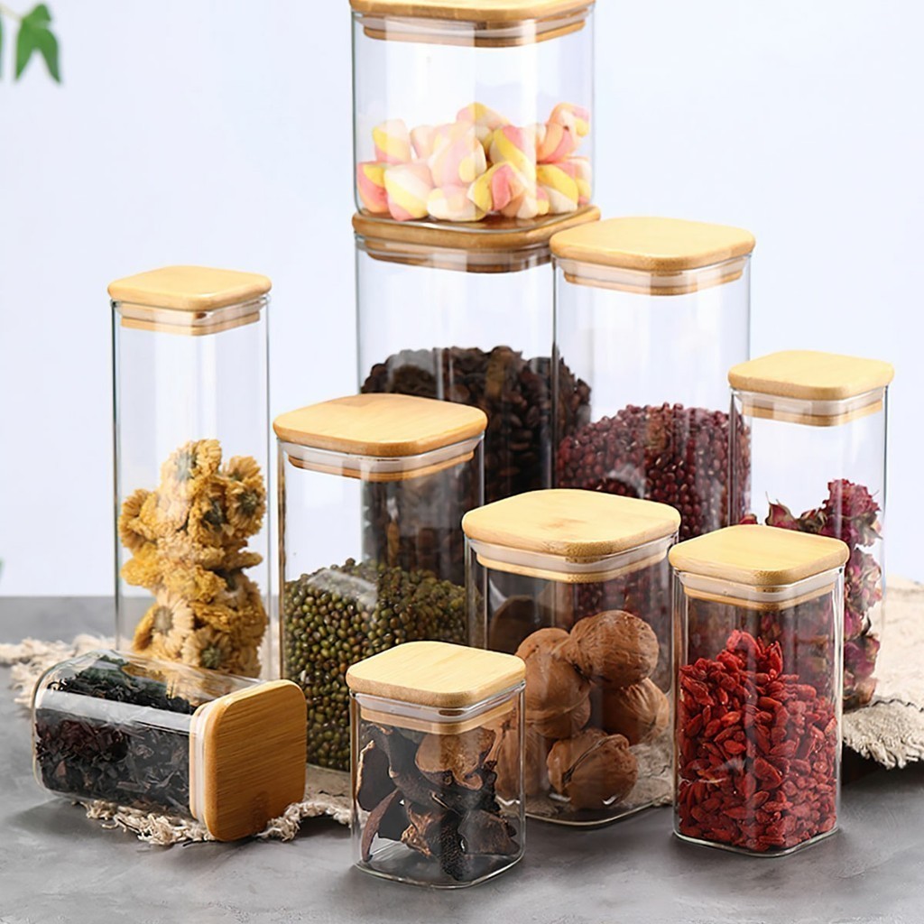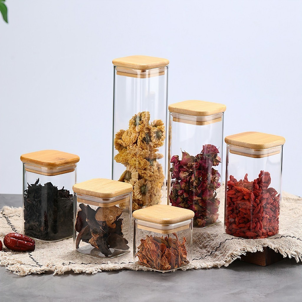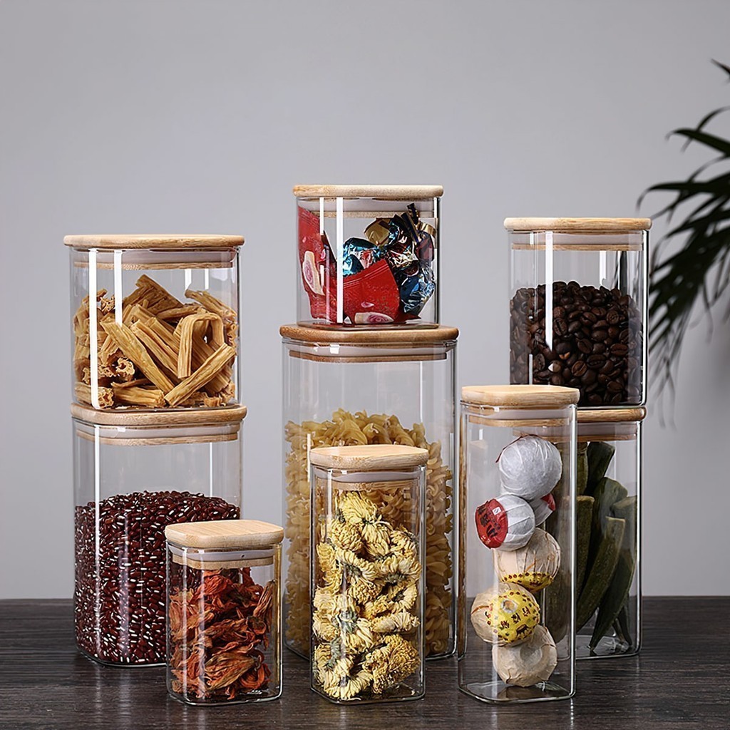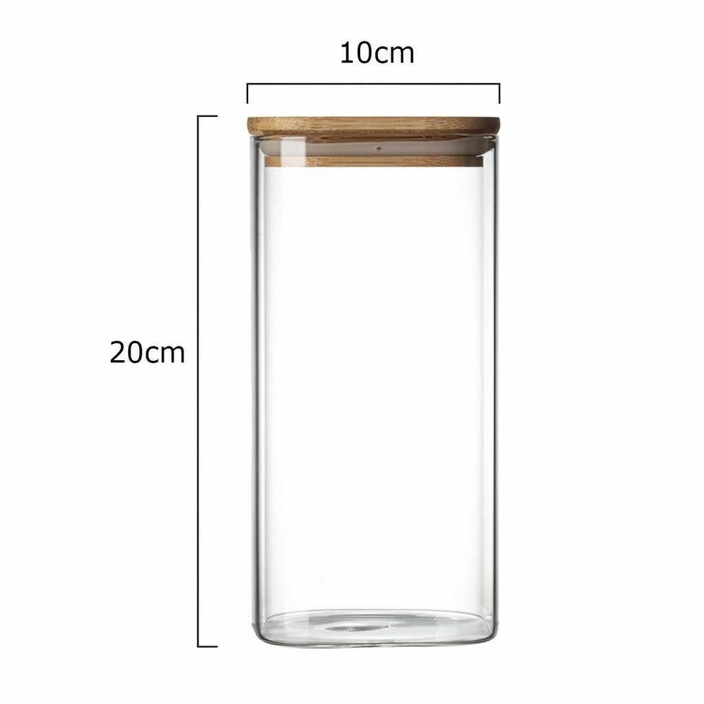 Hũ Thủy Tinh Vuông Lọ Thủy Tinh Vuông Nắp Gỗ Đựng Thực Phẩm 210-1950ml -Ipermercato