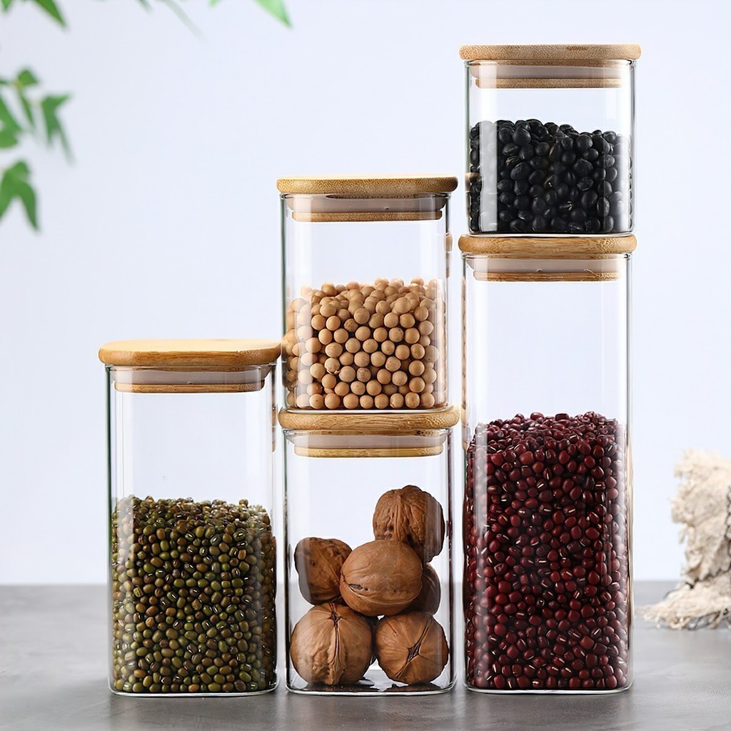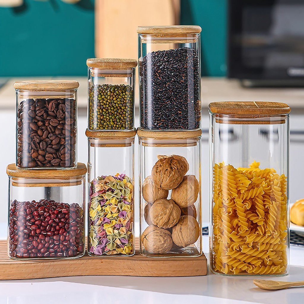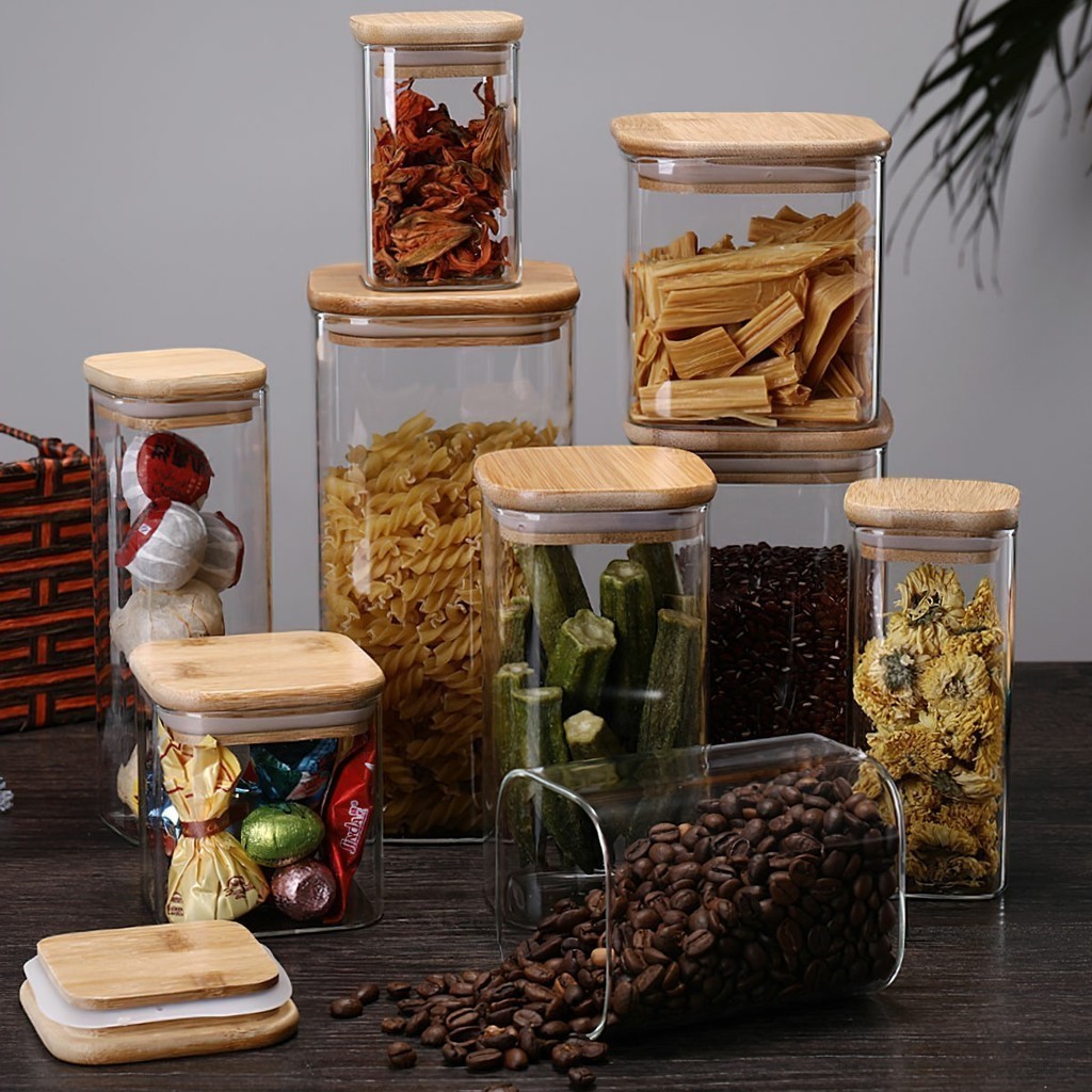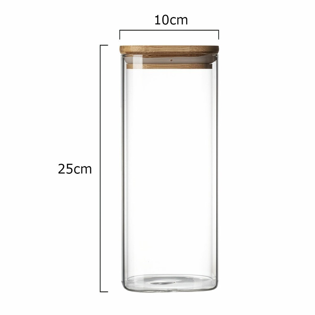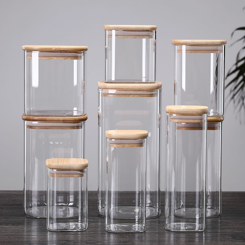 Hũ Thủy Tinh Vuông Lọ Thủy Tinh Vuông Nắp Gỗ Đựng Thực Phẩm 210-1950ml -Ipermercato