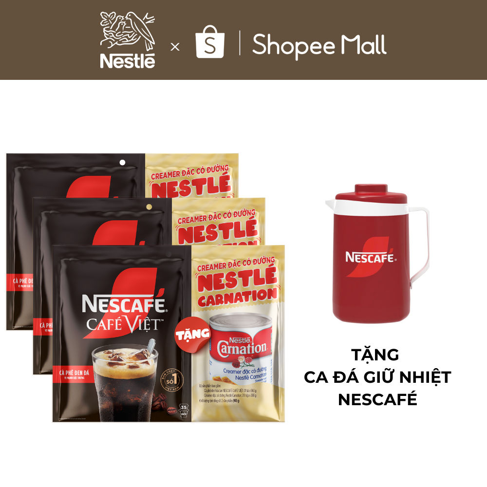 [Tặng 03 Lon sữa đặc Carnation và Ca đá NESCAFE] Combo 3 Bịch Cà phê đen hòa tan NESCAFÉ Café Việt (Túi 35 gói x 16g)