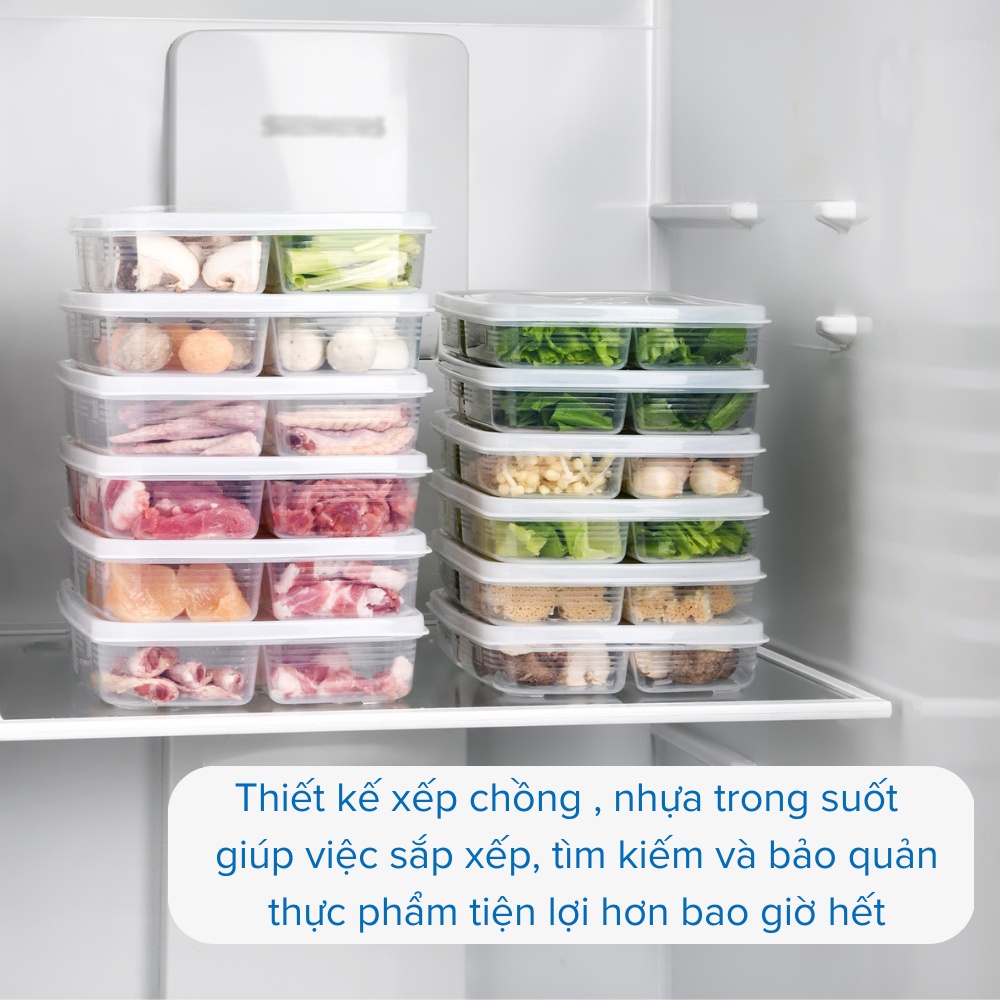 Hộp nhựa đựng thực phẩm chia nhiều ngăn khay hộp trữ đông đồ ăn nhựa PP cao cấp dùng trong tủ lạnh lò vi sóng SINGU