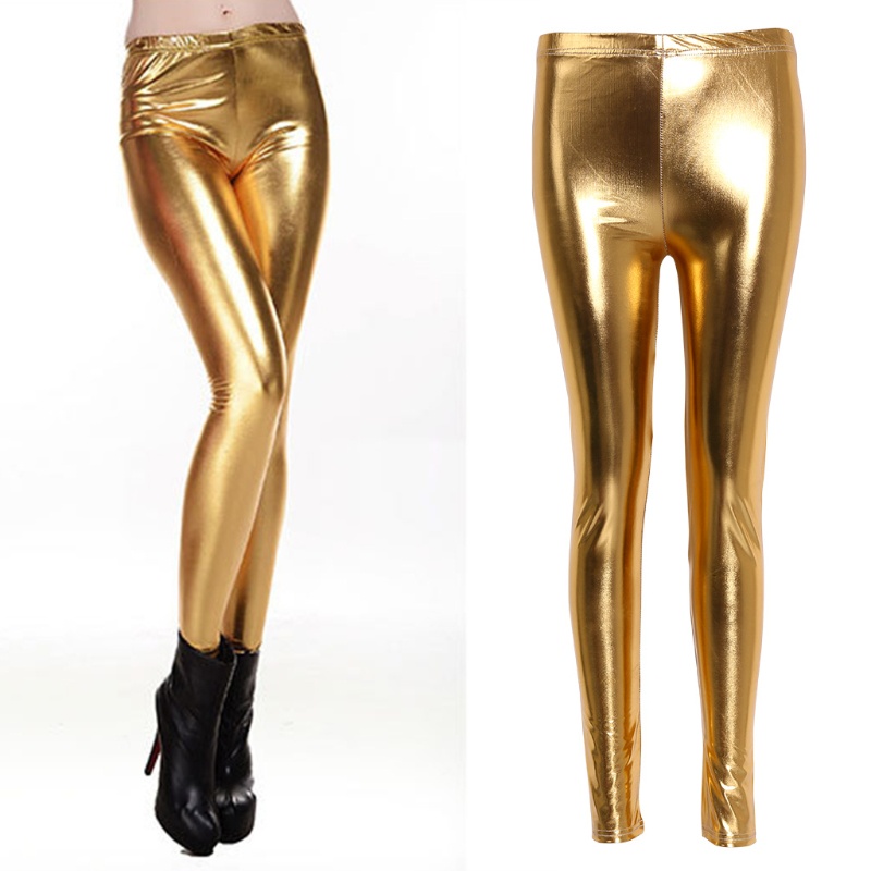 Quần Legging Nữ Giả Da Bóng Lưng Cao Thời Trang