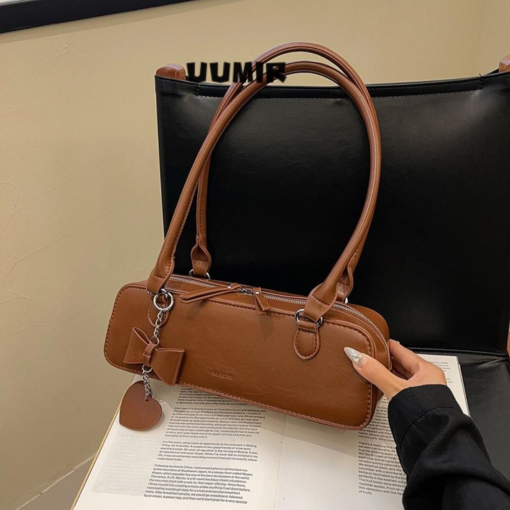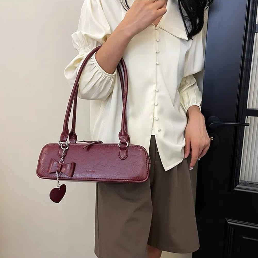 Túi đeo vai, có mặt dây chuyền trái tim Túi đeo nách có khóa kéo, Túi xách nữ thời trang màu trơn bằng da Pu cổ điển