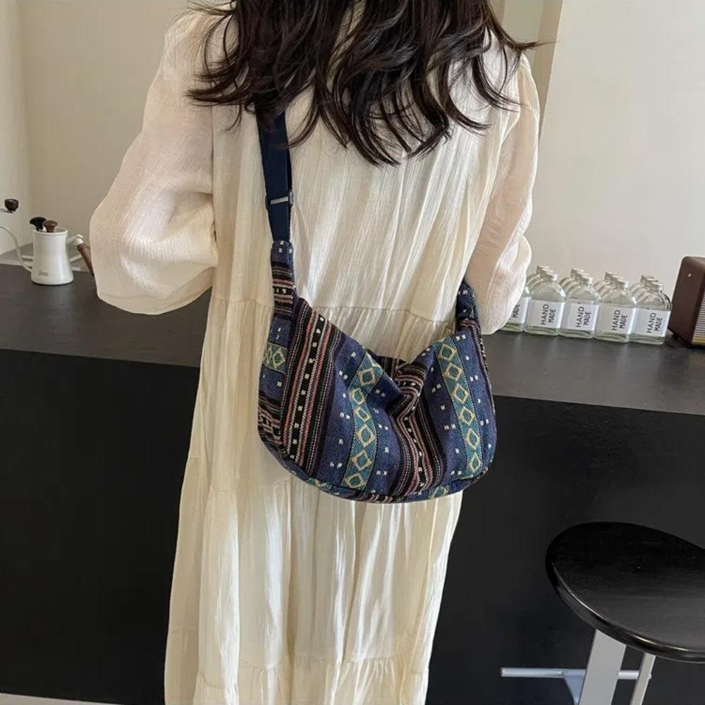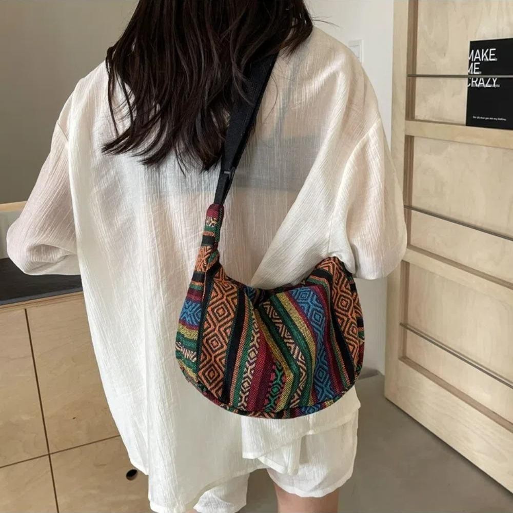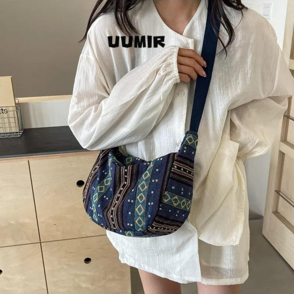 Túi Đeo Vai UUMIR, Túi Đeo Ngang Đóng Dây Kéo Phong Cách Bộ Lạc, Họa Tiết Sọc Vải Thời Trang Dung Tích Lớn Túi Messenger Nữ