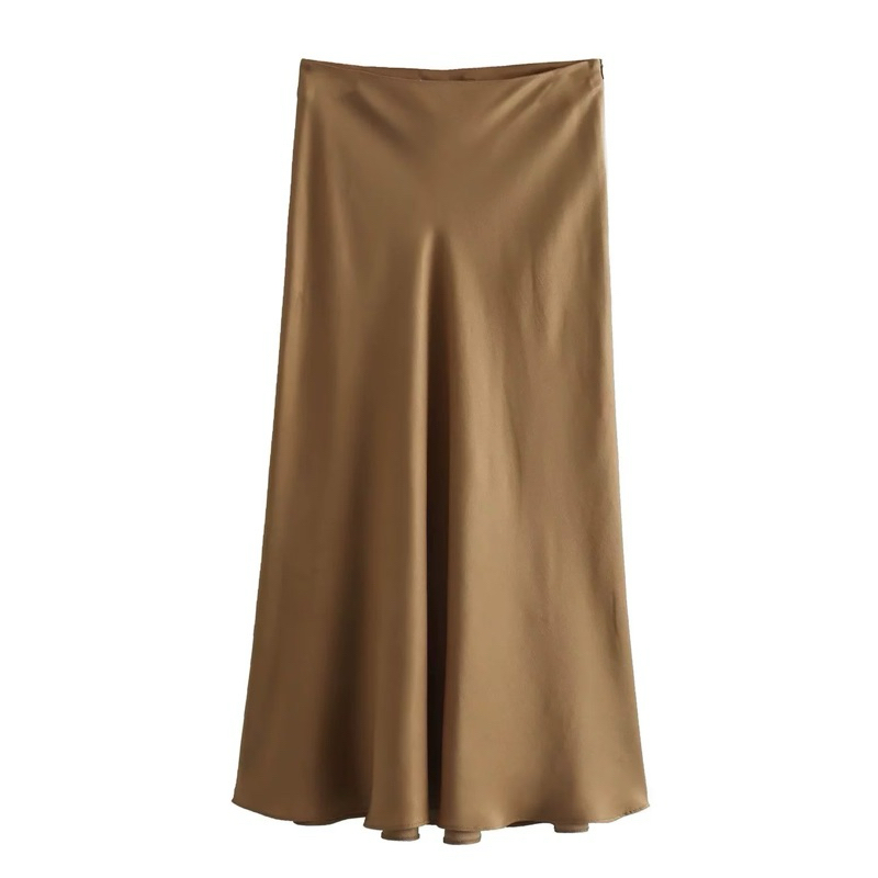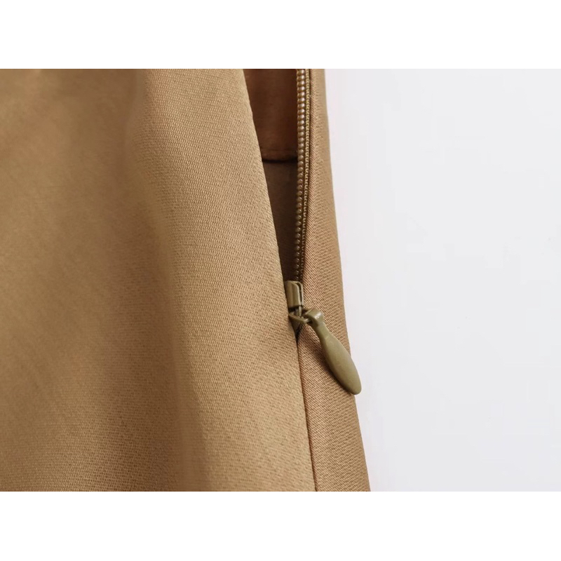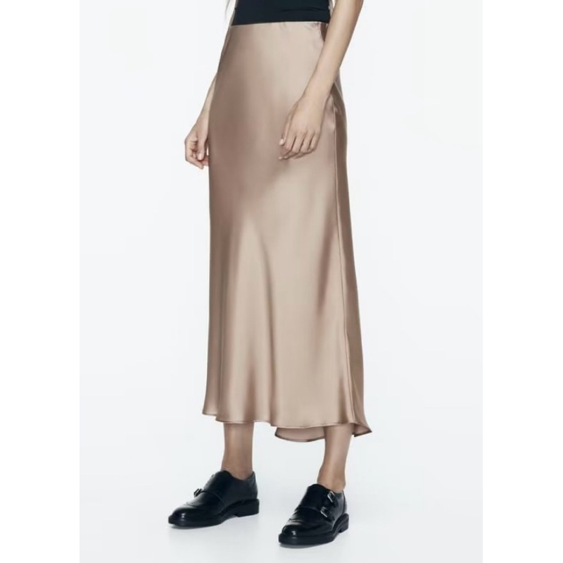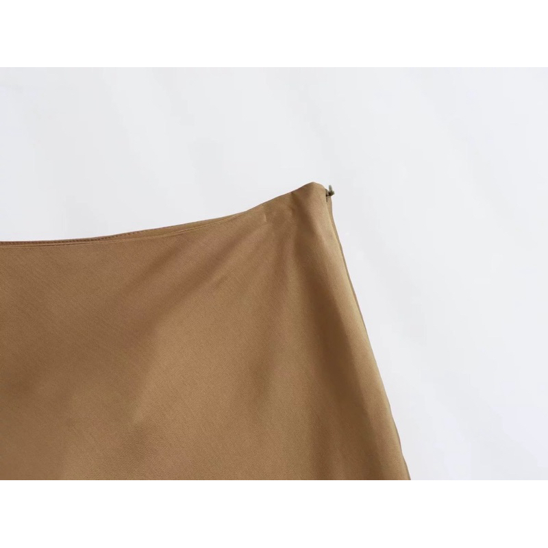 chân váy Zara made in Morocco đủ tag lụa be nâu sang đẹp