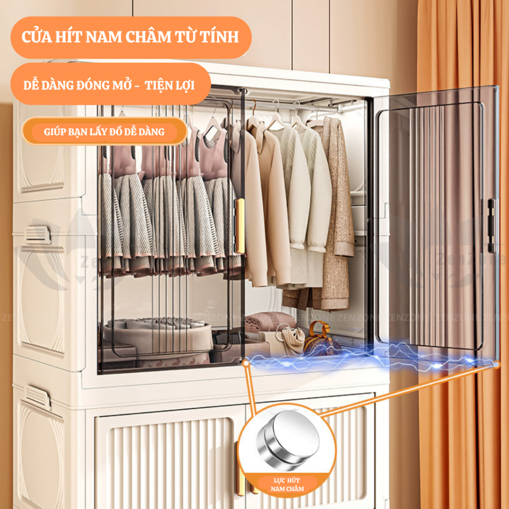 ZenZone Tủ Quần Áo Đa Năng Gấp Gọn, Tủ Nhựa đựng đồ dùng gia đình