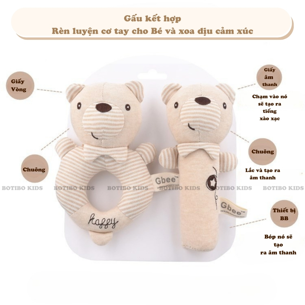 Gấu bông lục lạc đồ chơi xúc xắc Gbee mềm mại an toàn cho trẻ sơ sinh BOTIBO KIDS