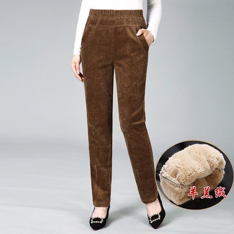 Quần Nhung Dày Lưng Cao Thời Trang Thu Đông Mới Cho Phụ Nữ Trung Niên
