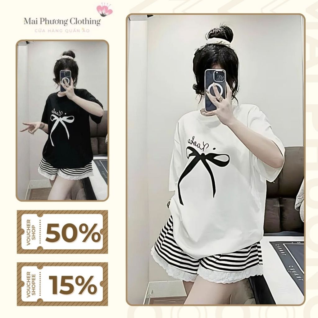 A10 Set đồ nữ sang chảnh áo phông kèm quần đùi cá tính chất cotton mẫu SETNOKAOKAQDUIKE.