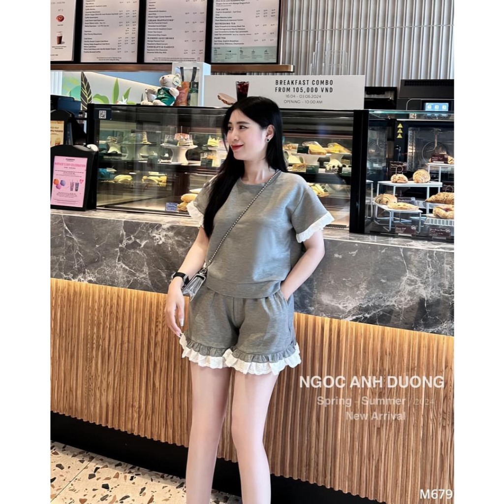A11 Set đồ nữ sang chảnh áo kèm quần đùi cá tính chất cotton size 40-65kg mẫu SETTRONBEOGAUTAYQUAN.