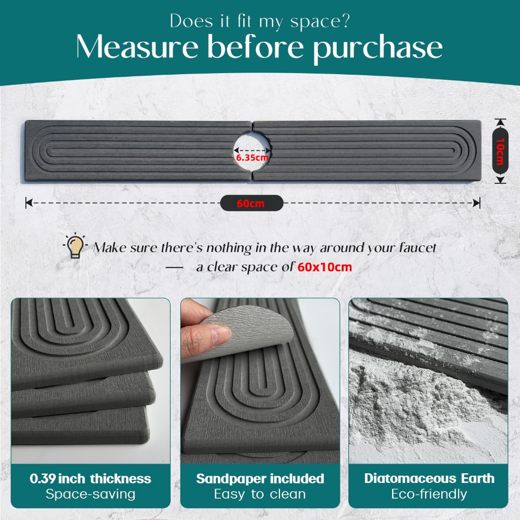 Thảm thấm nước vòi bếp - Tấm bảo vệ chống nước Diatomaceous cho vòi chậu rửa, Khay đá thấm nước thẩm mỹ